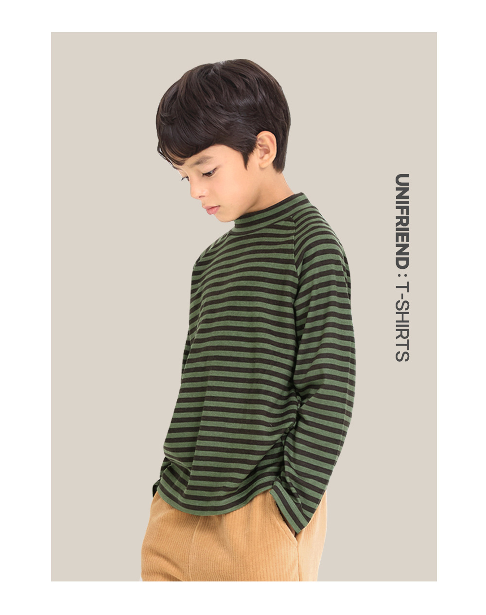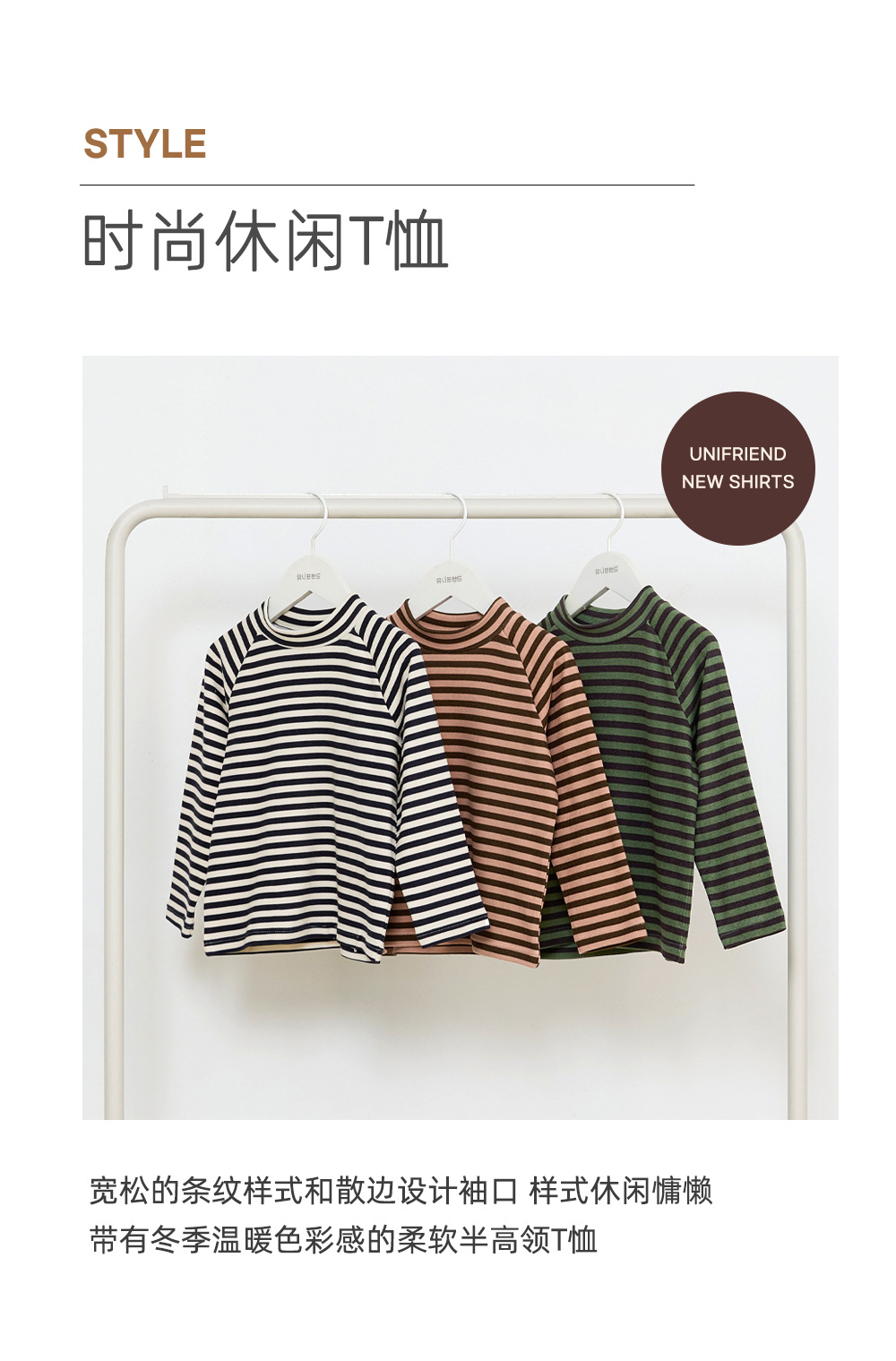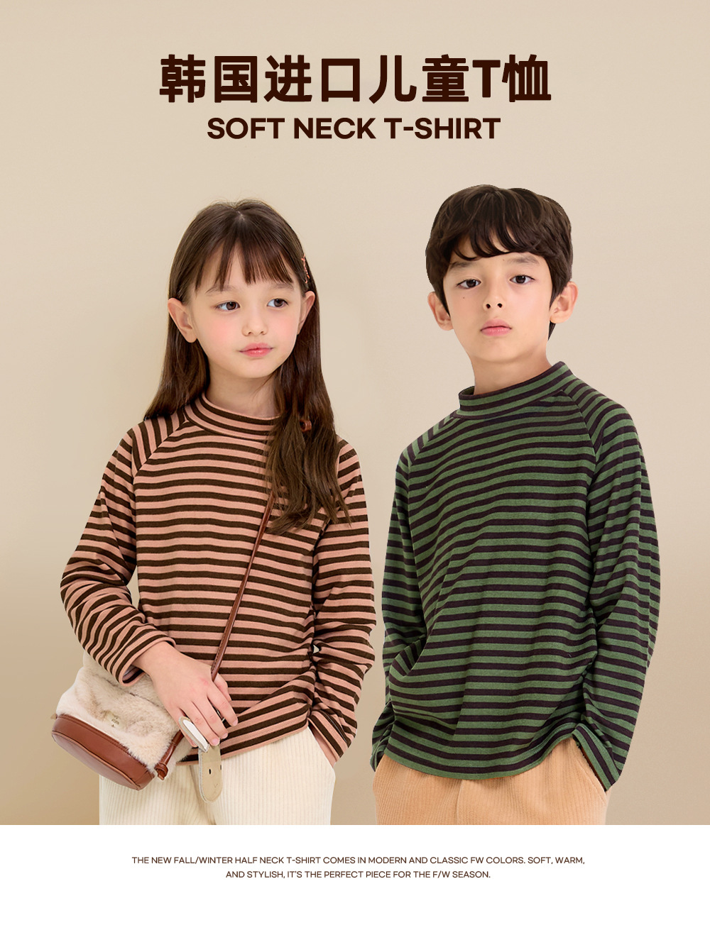새로운 한국 신선한 예술적 느슨한 높은 목 줄무늬 최고 어린이 티셔츠 올 매치 베이스스토어 가기