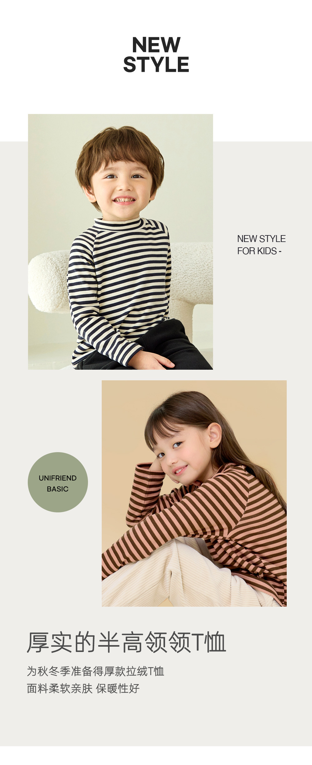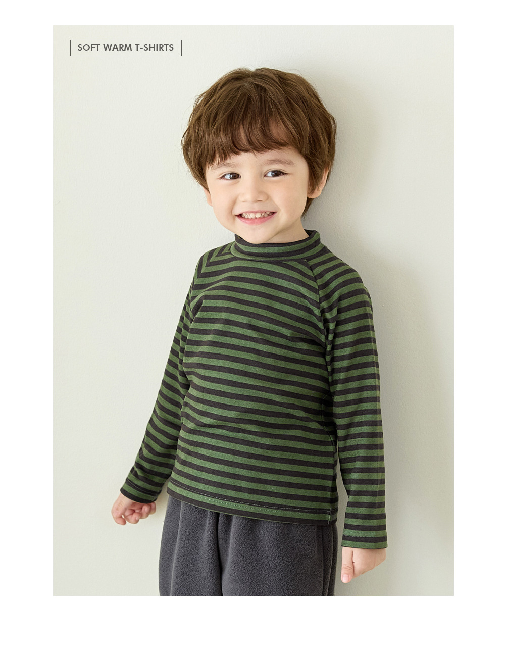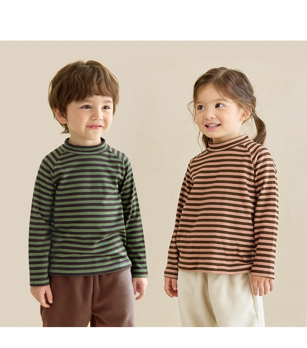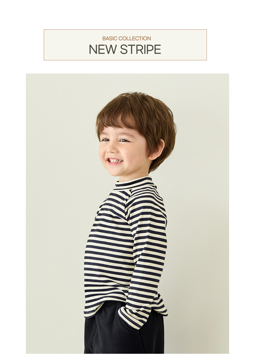 새로운 한국 신선한 예술적 느슨한 높은 목 줄무늬 최고 어린이 티셔츠 올 매치 베이스스토어 가기