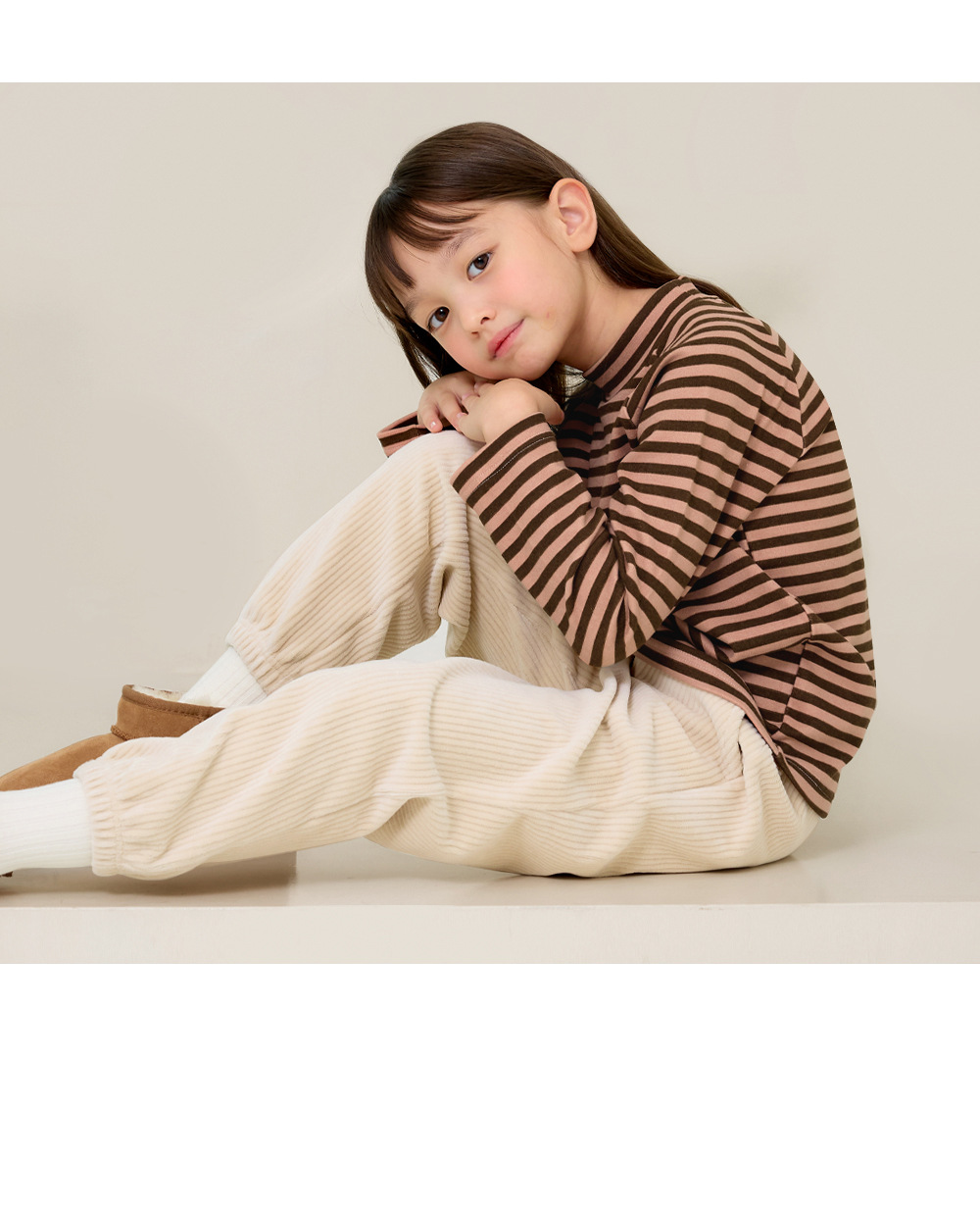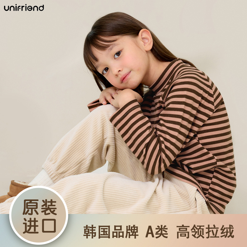 새로운 한국 신선한 예술적 느슨한 높은 목 줄무늬 최고 어린이 티셔츠 올 매치 베이스