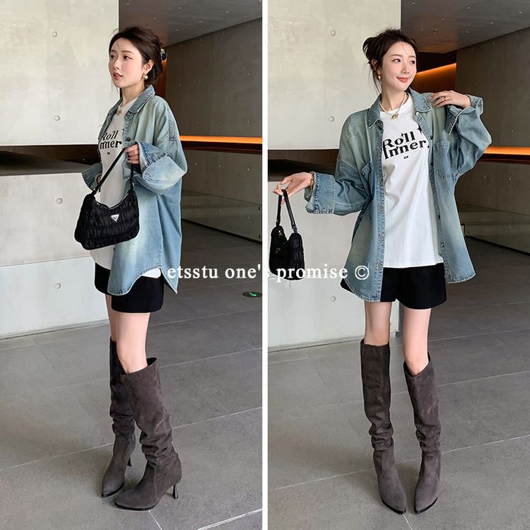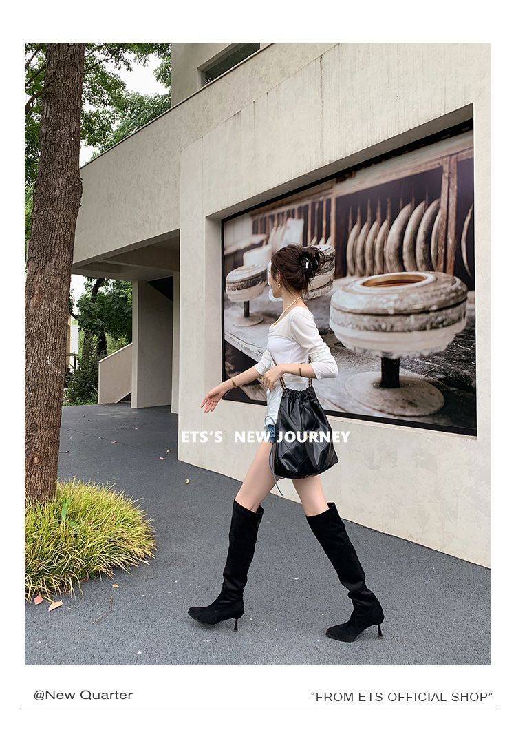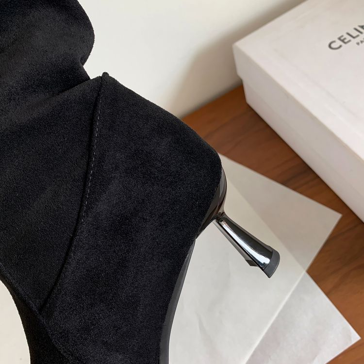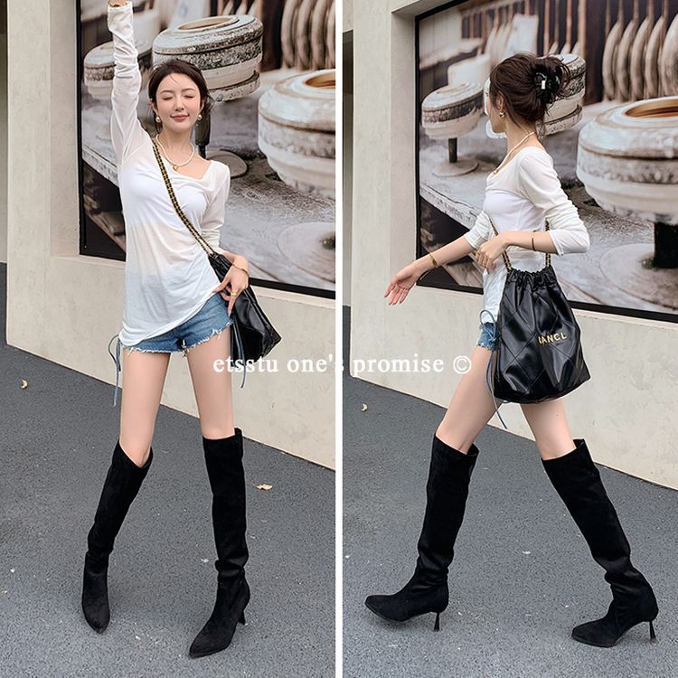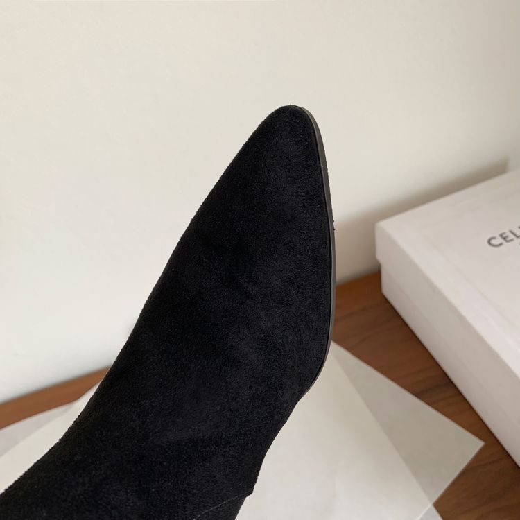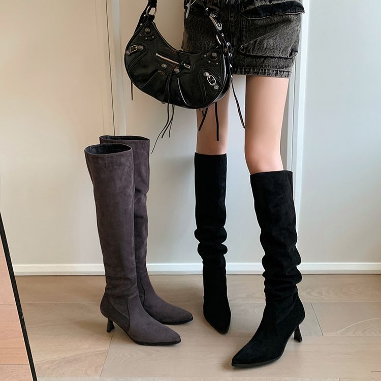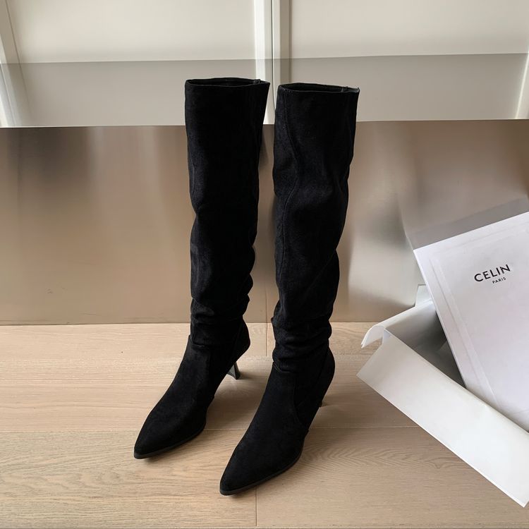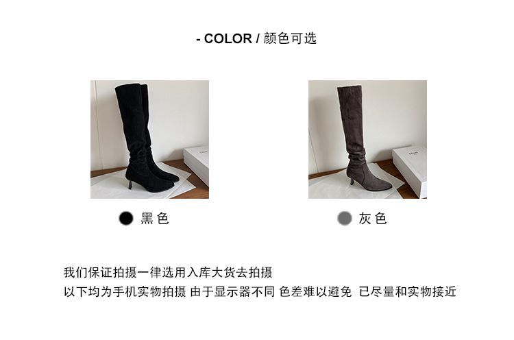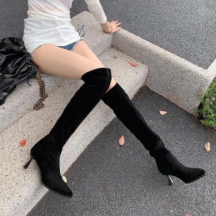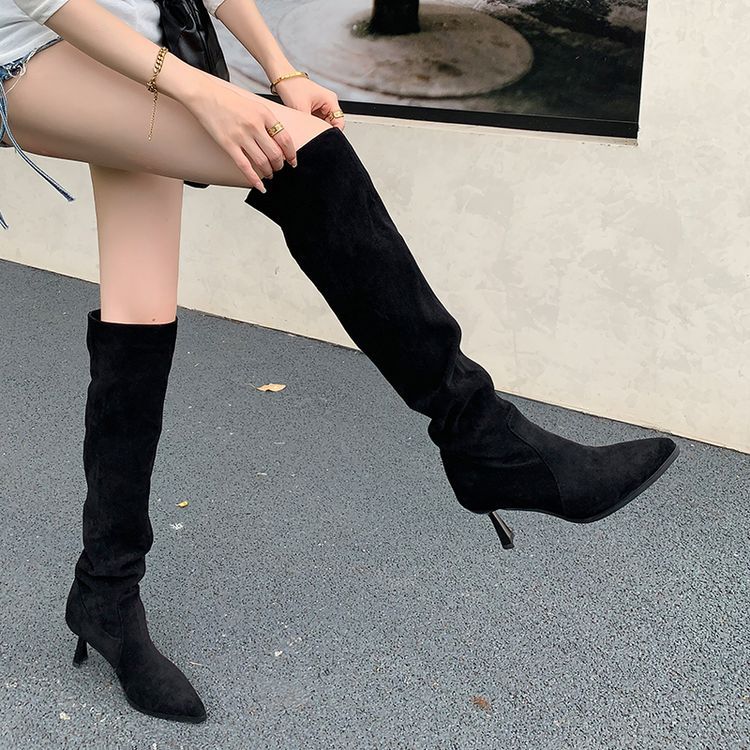 스파이스 걸 우아한 하이힐 포인팅 헤드 슬리밍 올 매치 힙 부츠 여자 2024 가을 겨울 뉴 스웨이드 얇은 힐 부츠스토어 가기