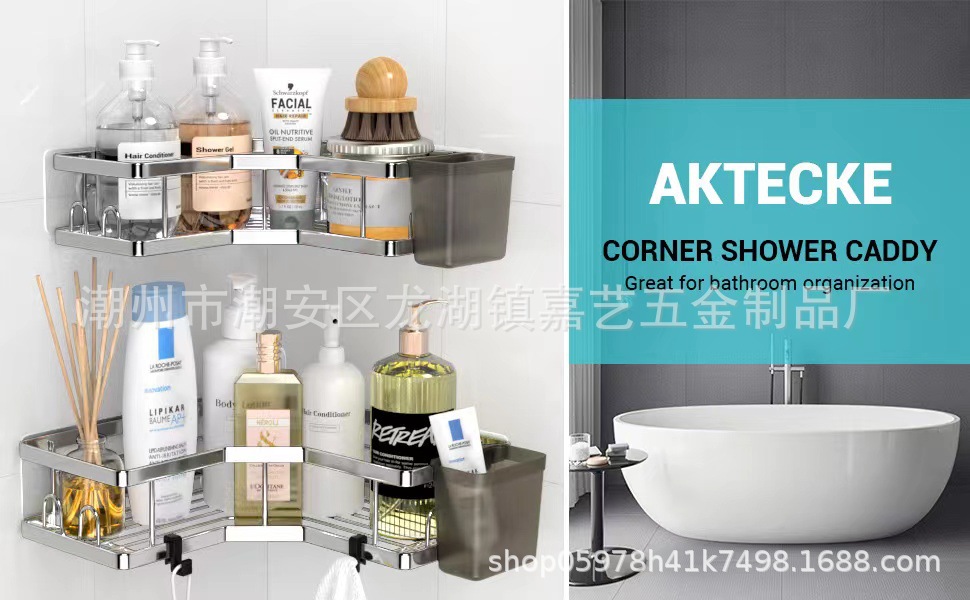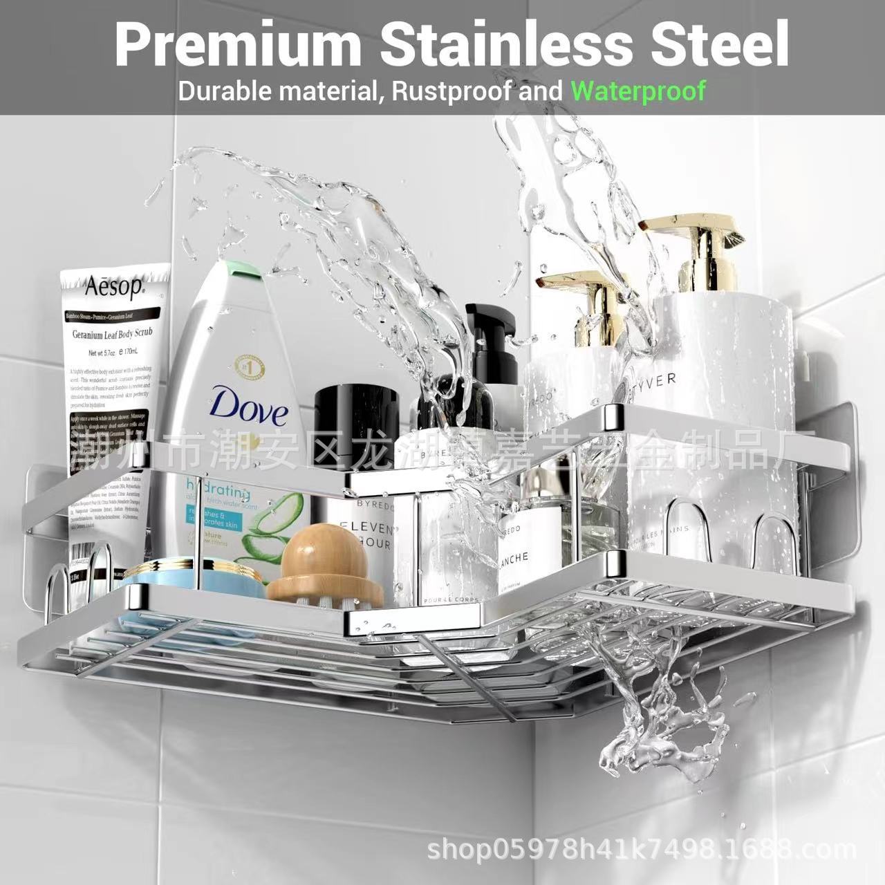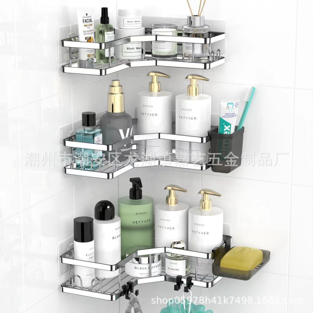 욕실 삼각형 수납 선반, 구멍이 없는 욕실 세면 용품 수납 선반, 벽걸이 형 코너 삼각형 선반스토어 가기