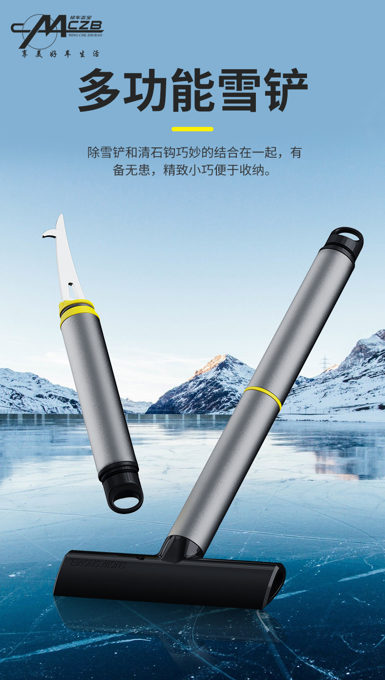 자동차 다기능 제설기, 유리 김서림 제거 및 깨진 돌 제거용 삽, 차량 도색에 손상 없이 휴대 가능, 유리 제상 및 제설용