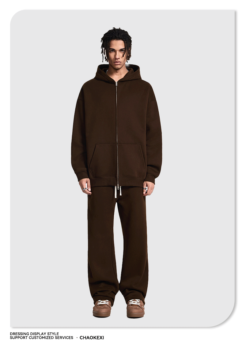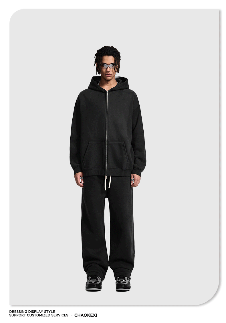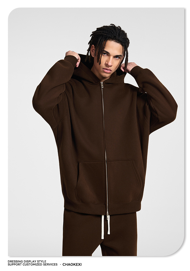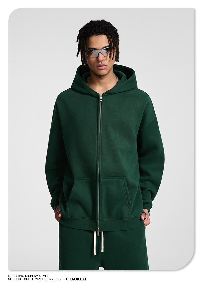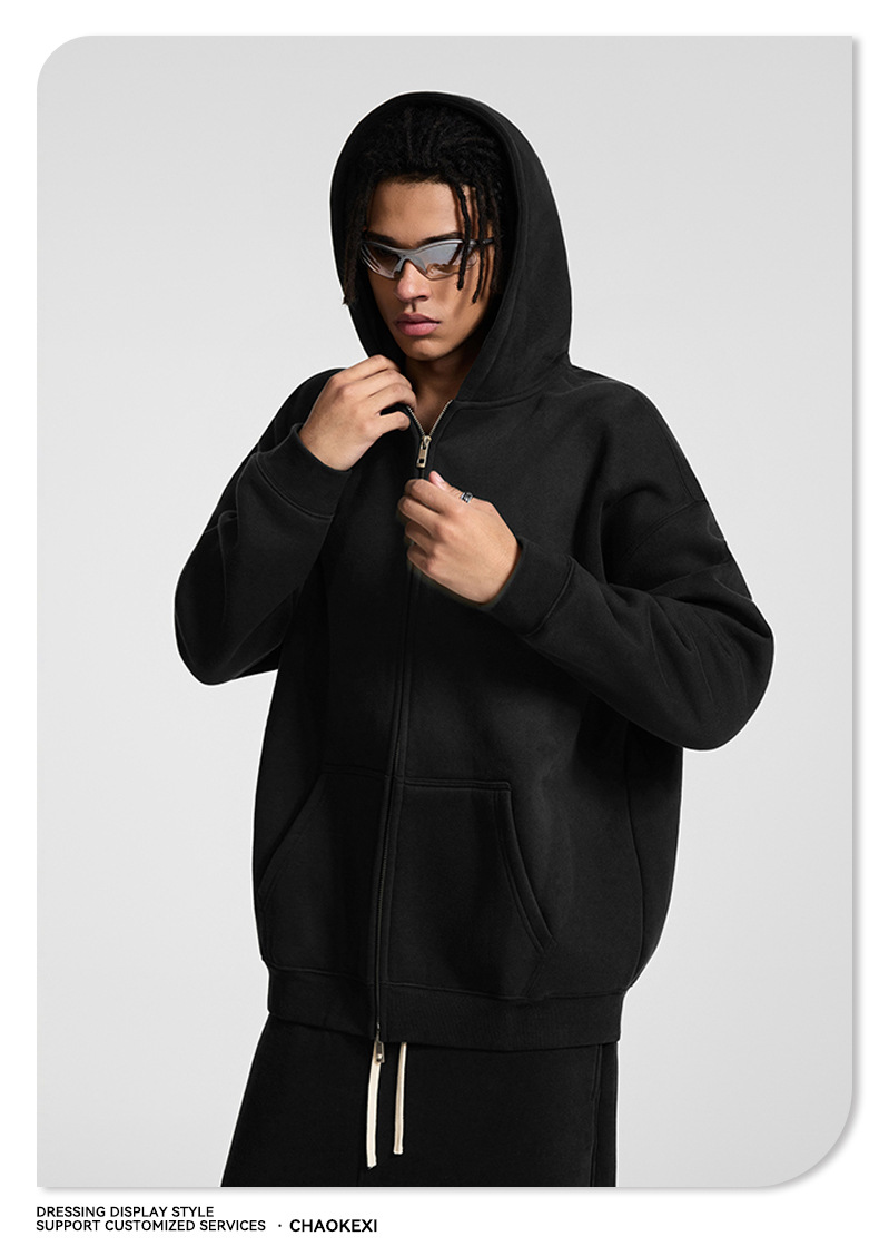 가을 겨울 신상 남성용 스웨트셔츠 플러스 벨벳 350G 유럽 및 미국 스트리트 스타일 지퍼 카디건 재킷 루즈핏 트렌디 브랜드 스웨트셔츠