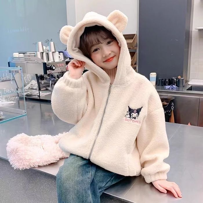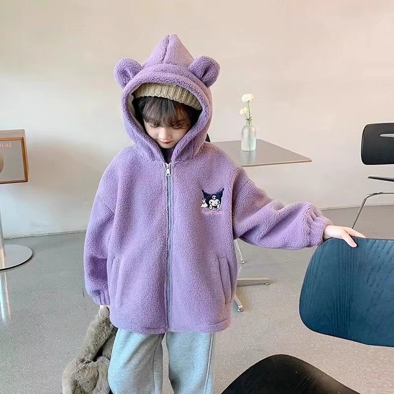 여자 양털 재킷 겨울 2024 가을, 겨울 새로운 어린이 후드 옷 여자 겨울 모직 스웨터스토어 가기