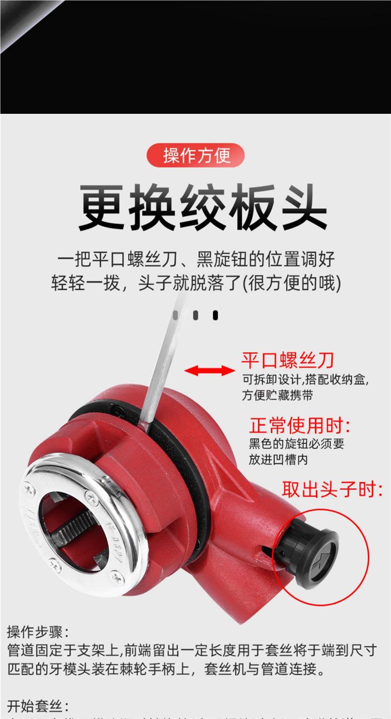 수동 소형 스레딩 기계 핸드 헬드 아연 도금 파이프 치아 개방 워터 파이프 트위스트 아티팩트 라이트 소방 파이프 스레딩 도구