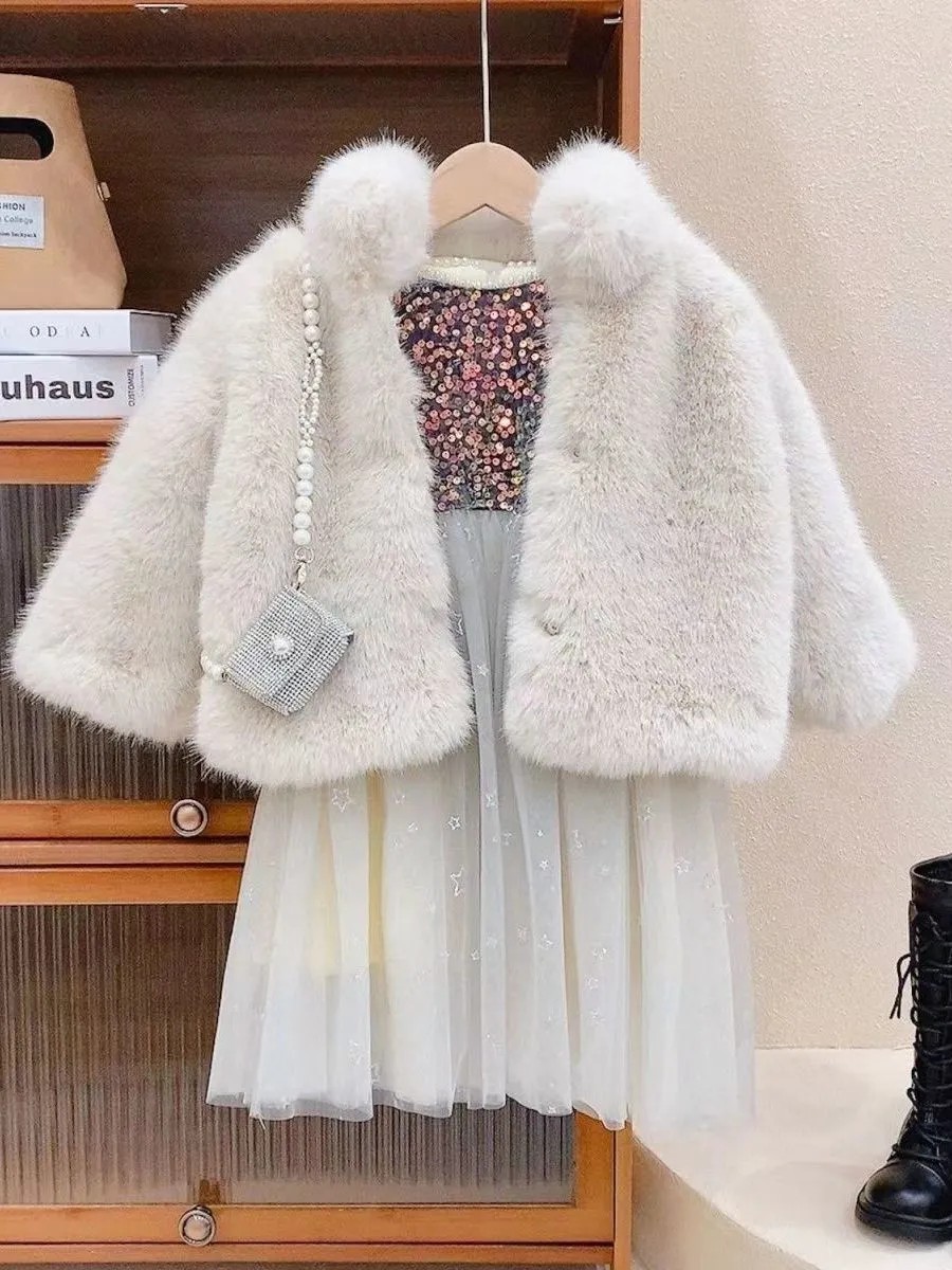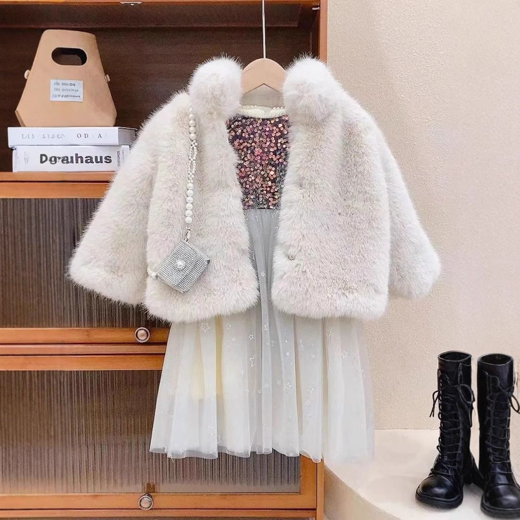 어린이 모조 밍크 모피 코트 새 스타일 아기 두꺼운 한국식 코트 소녀 서양식 가을과 겨울 중소형 아동복스토어 가기