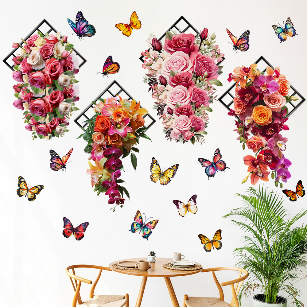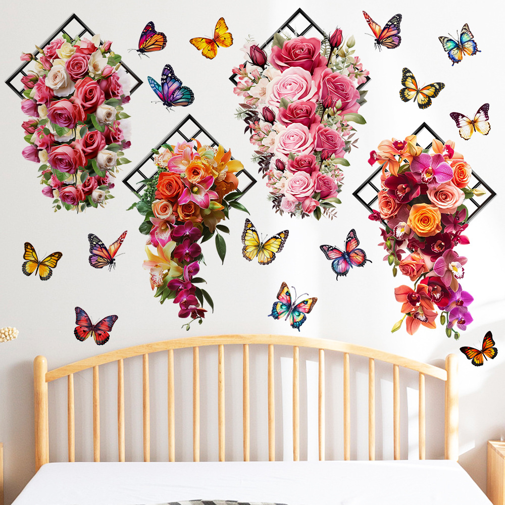 Yiyao DD3926 간단한 3d 장미 꽃 창조적 인 벽지 거실 침실 벽 자체 접착 스티커
