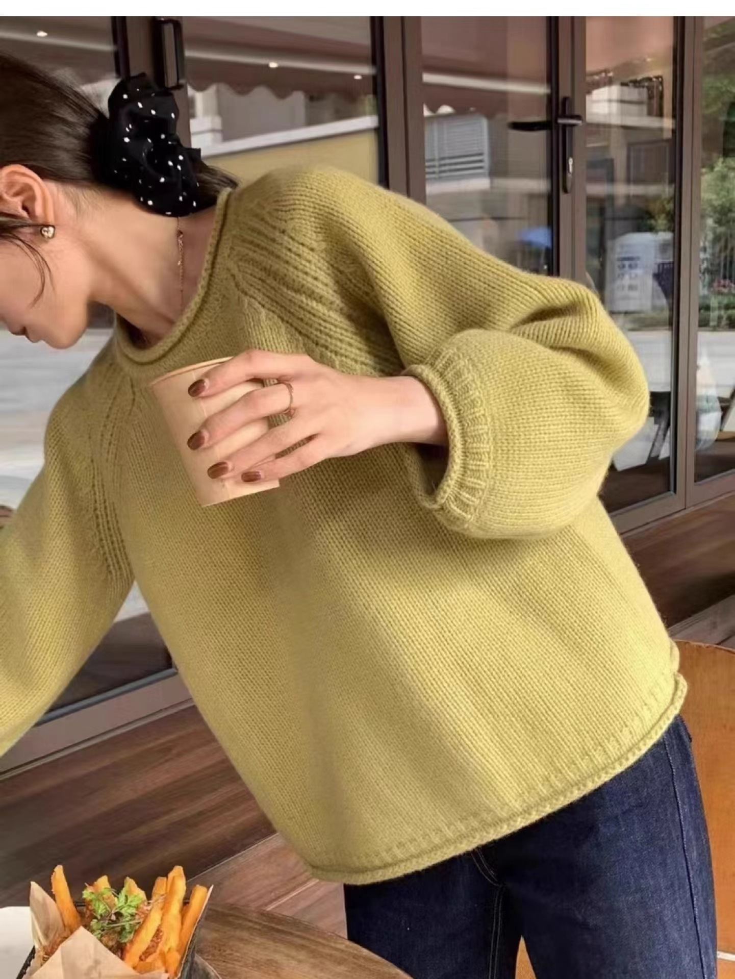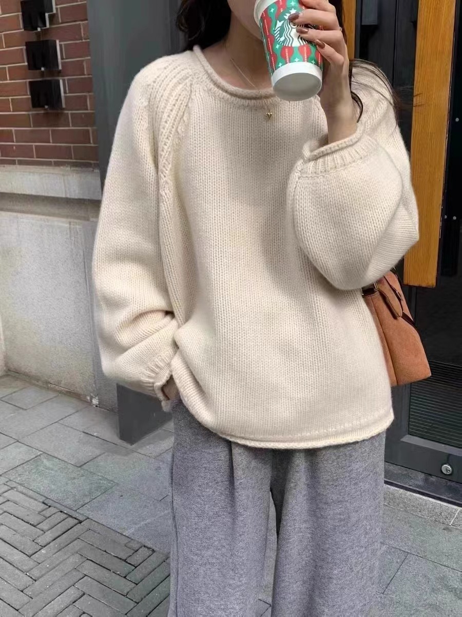 가을과 겨울 새로운 둥근 목 모직 스웨터 여성의 두꺼운 Curled 스웨터 느슨한 게으른 스타일 유럽 니트 베이스 셔츠스토어 가기