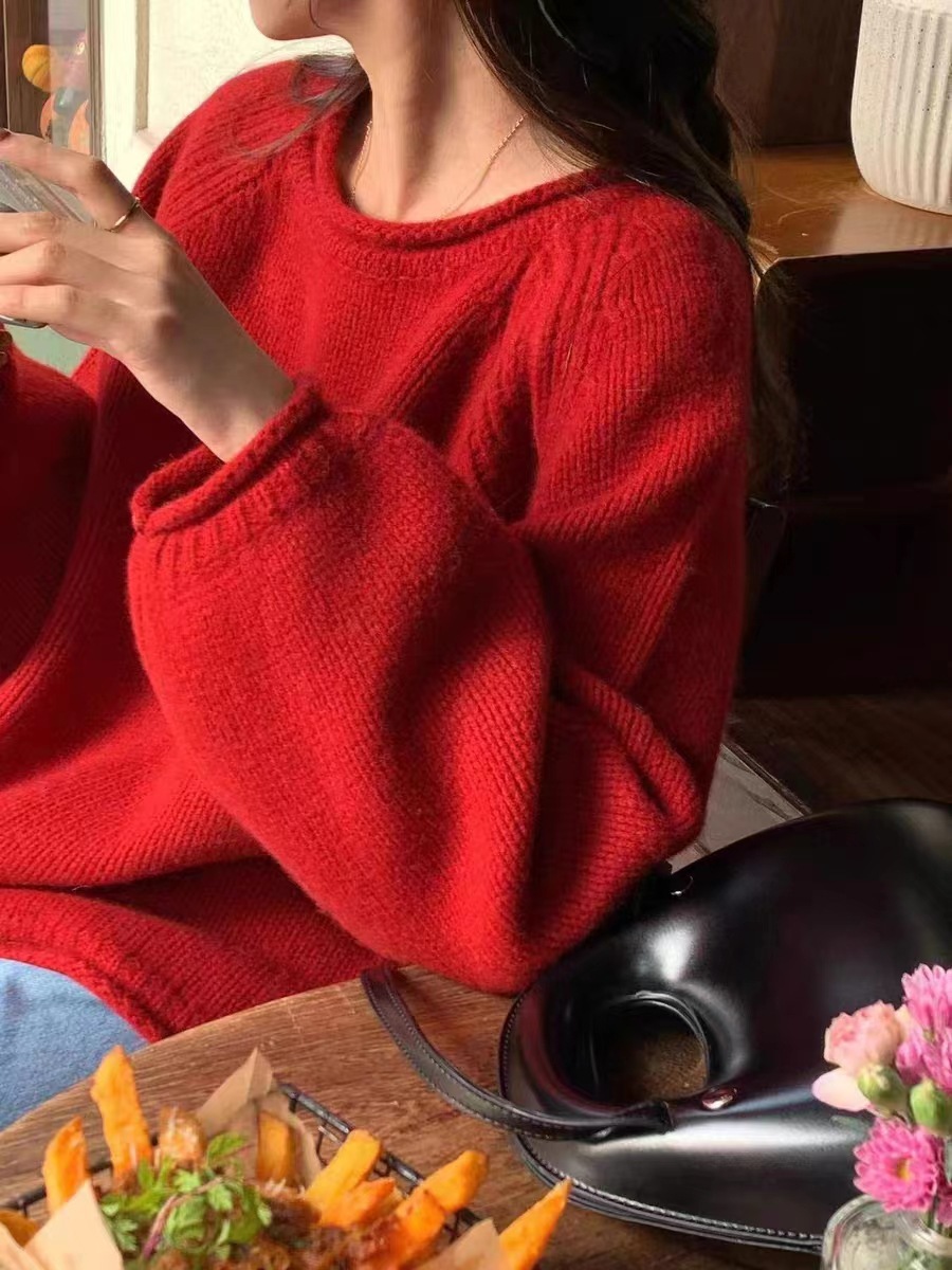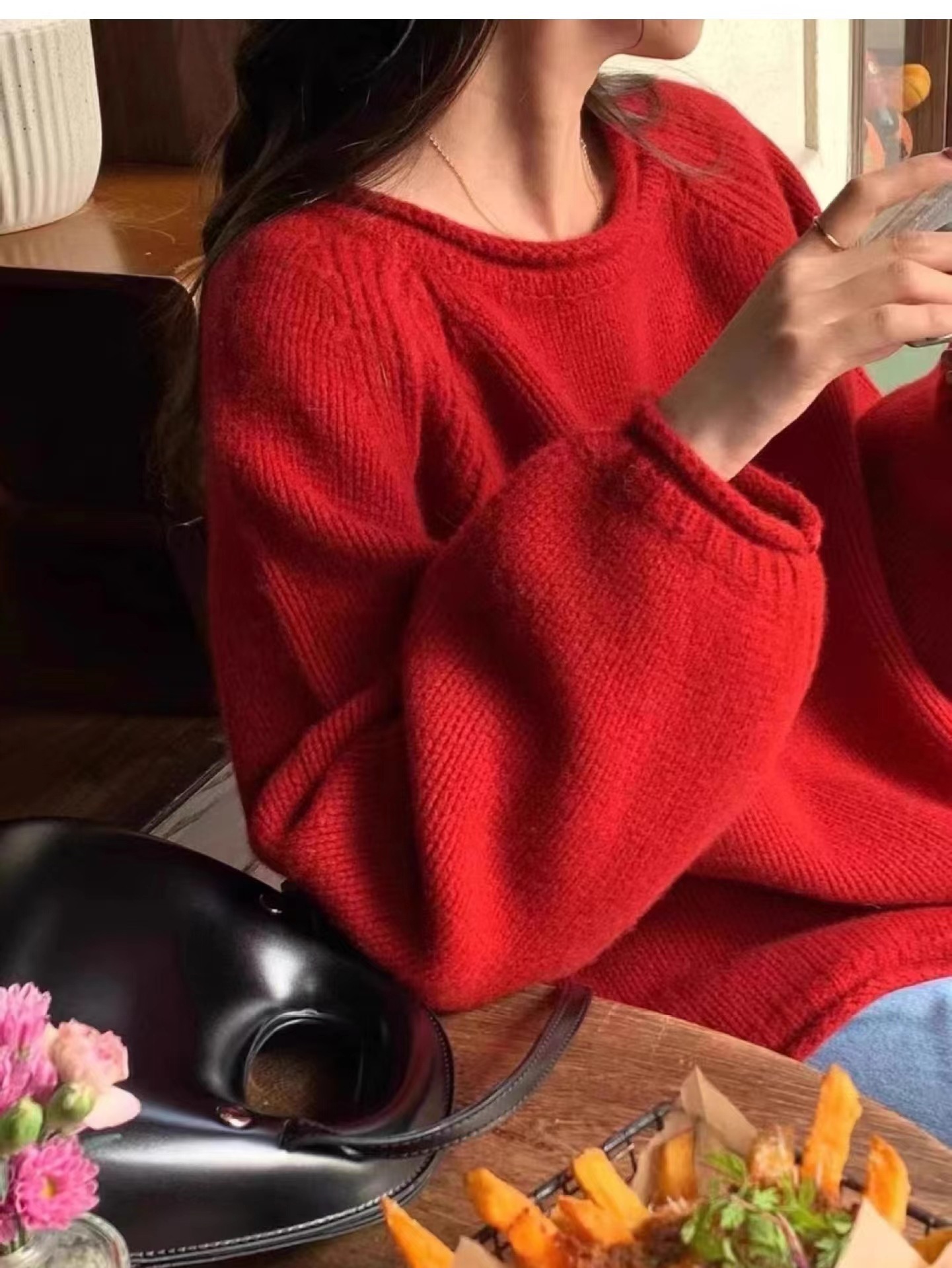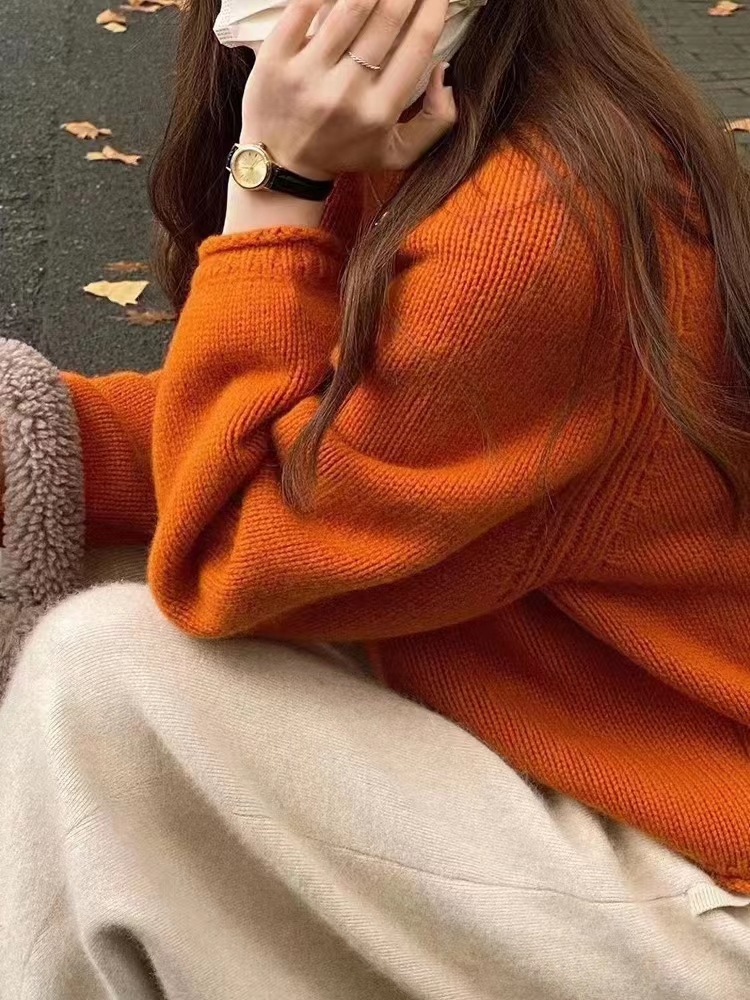 가을과 겨울 새로운 둥근 목 모직 스웨터 여성의 두꺼운 Curled 스웨터 느슨한 게으른 스타일 유럽 니트 베이스 셔츠