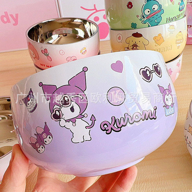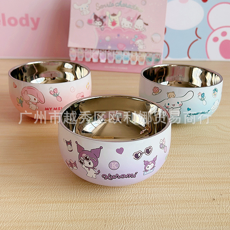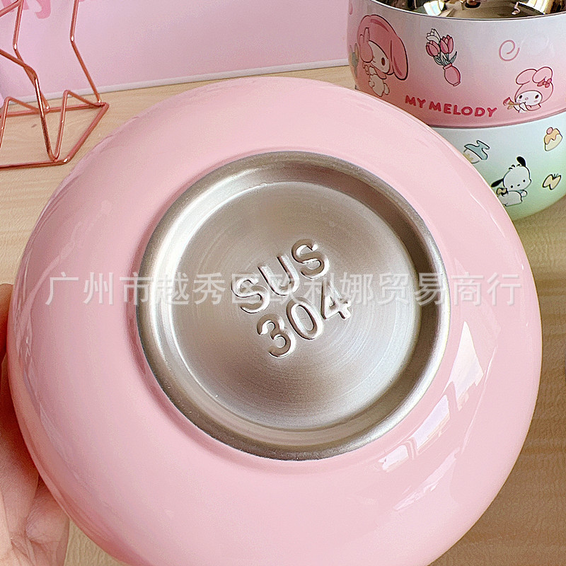 만화 304 스테인레스 스틸 라운드 그릇 어린이 학생 더블 레이어 단열 그릇 새로운 안티 스케일링 그릇 성인 가정용 쌀 그릇