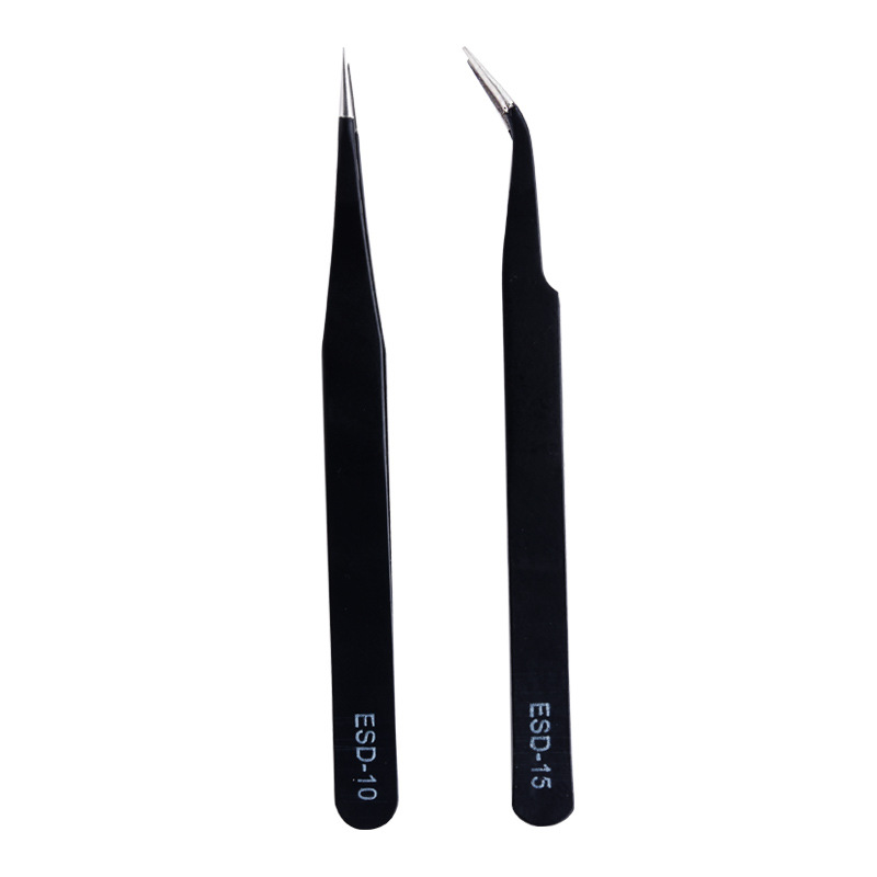 스테인레스 스틸 블랙 정전기 방지 핀셋 뾰족한 팔꿈치 도구 새 둥지 이식 속눈썹 네일 보석 핀셋 도매