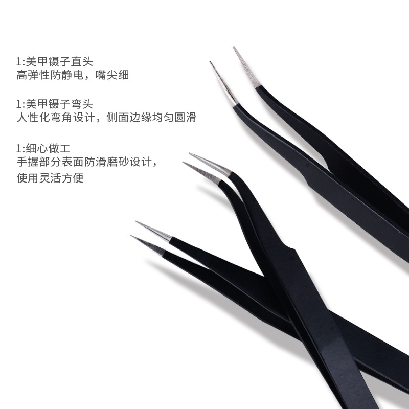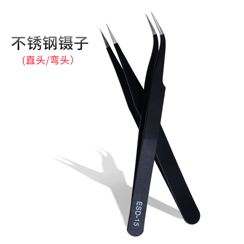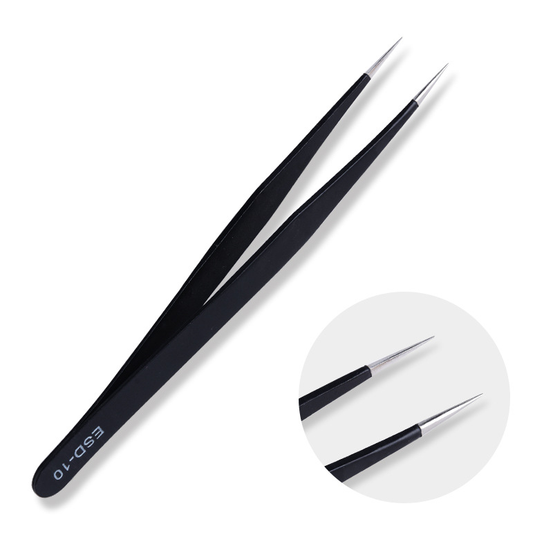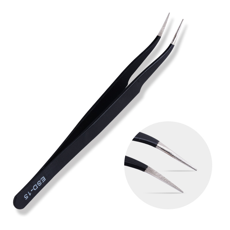 스테인레스 스틸 블랙 정전기 방지 핀셋 뾰족한 팔꿈치 도구 새 둥지 이식 속눈썹 네일 보석 핀셋 도매스토어 가기