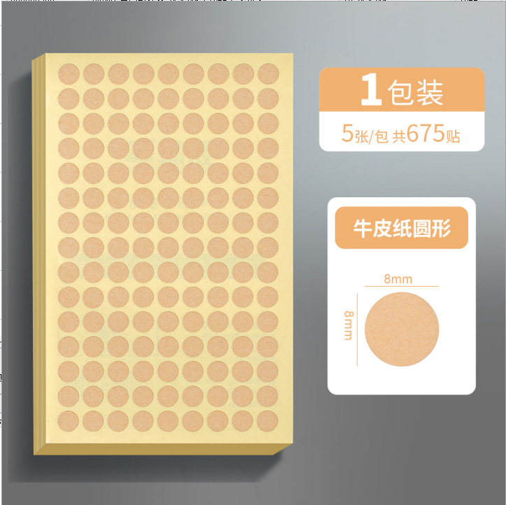 • 원형 8mm 크라프트지 1묶음 (총 675개 스티커)