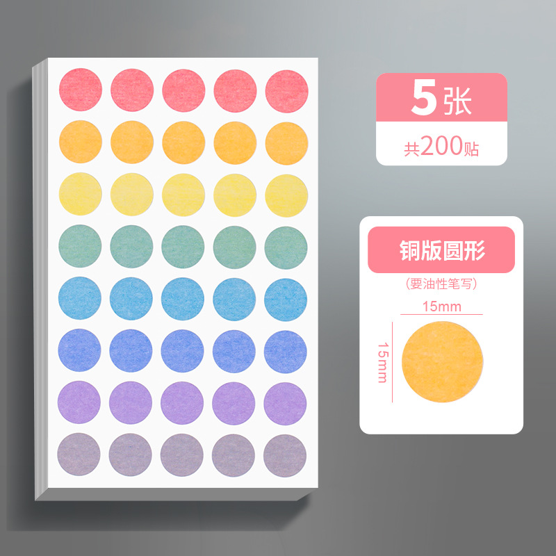 • 원형 15mm 컬러 1팩_스티커 총 200개 (유성펜으로 필기용)