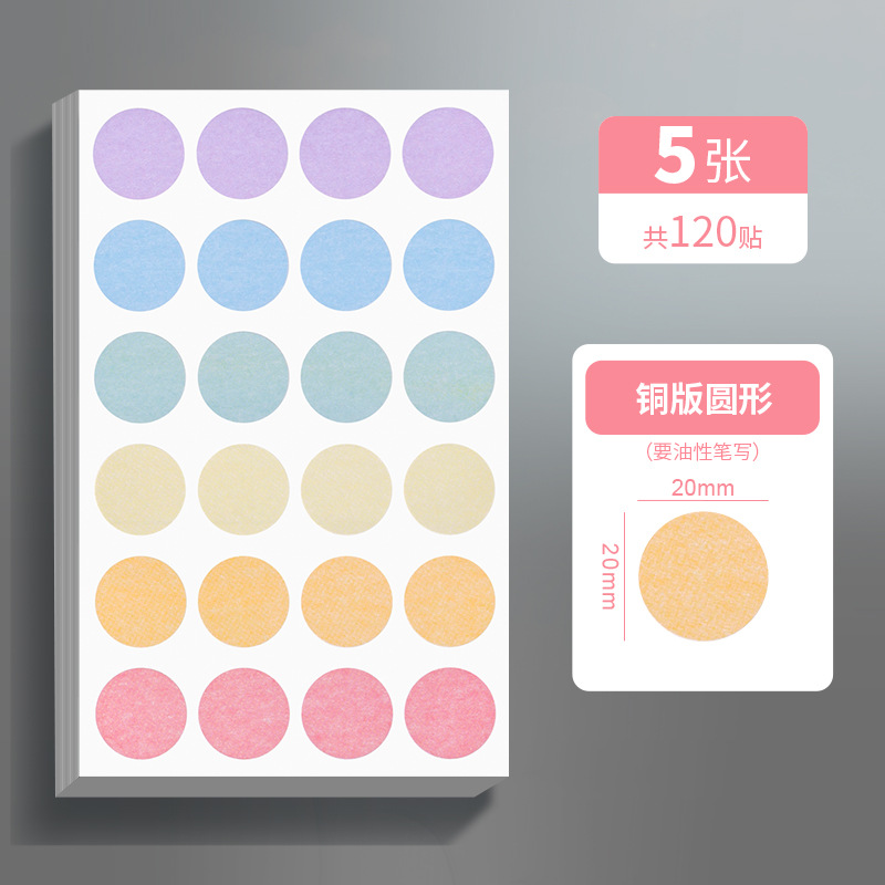 • 원형 20mm 컬러 1팩_스티커 총 120개 (유성펜으로 필기용)