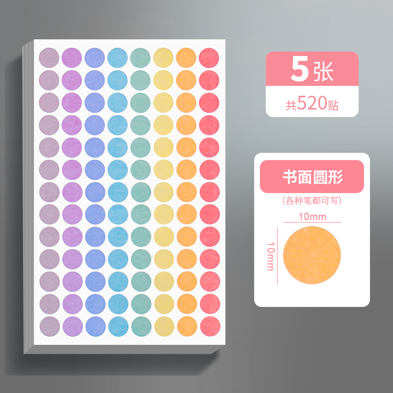 • 원형 10mm 컬러 1팩_스티커 총 520개 (유성펜으로 필기용)