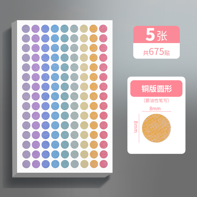 • 원형 8mm 컬러 1팩_스티커 총 675개 (유성펜으로 필기용)