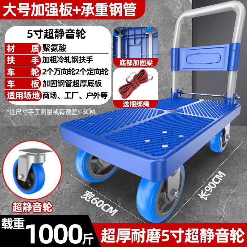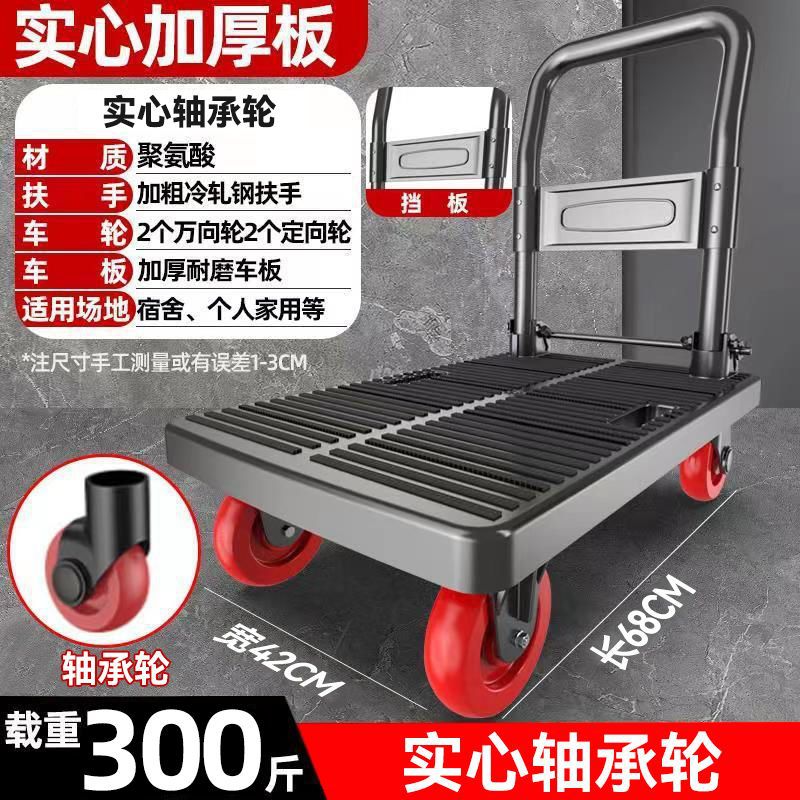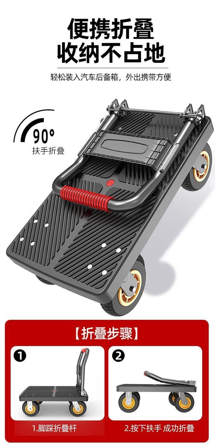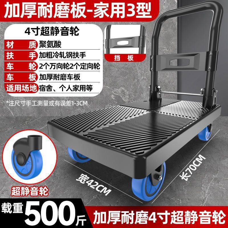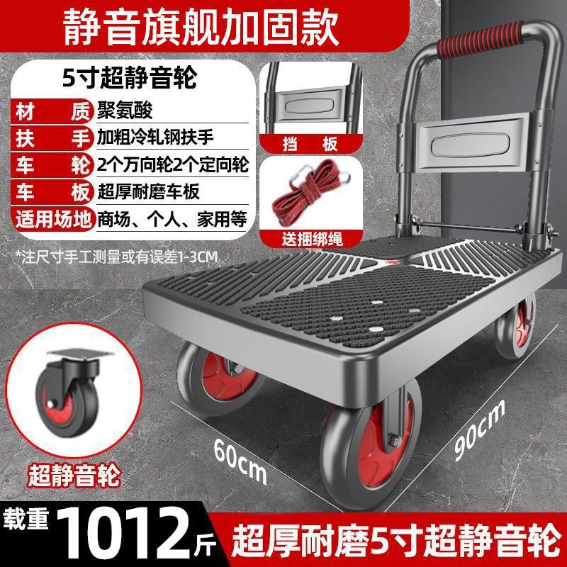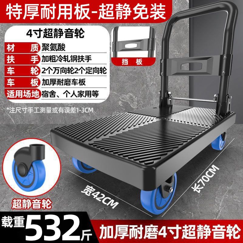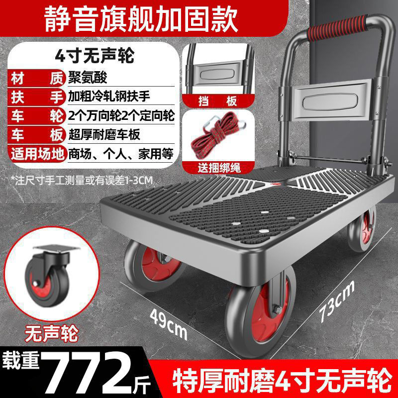 카트 플랫 베드 카트 트레일러 소형 카트 푸시 트럭 접이식 휴대용 조용한 카트 가정용 화물 손수레