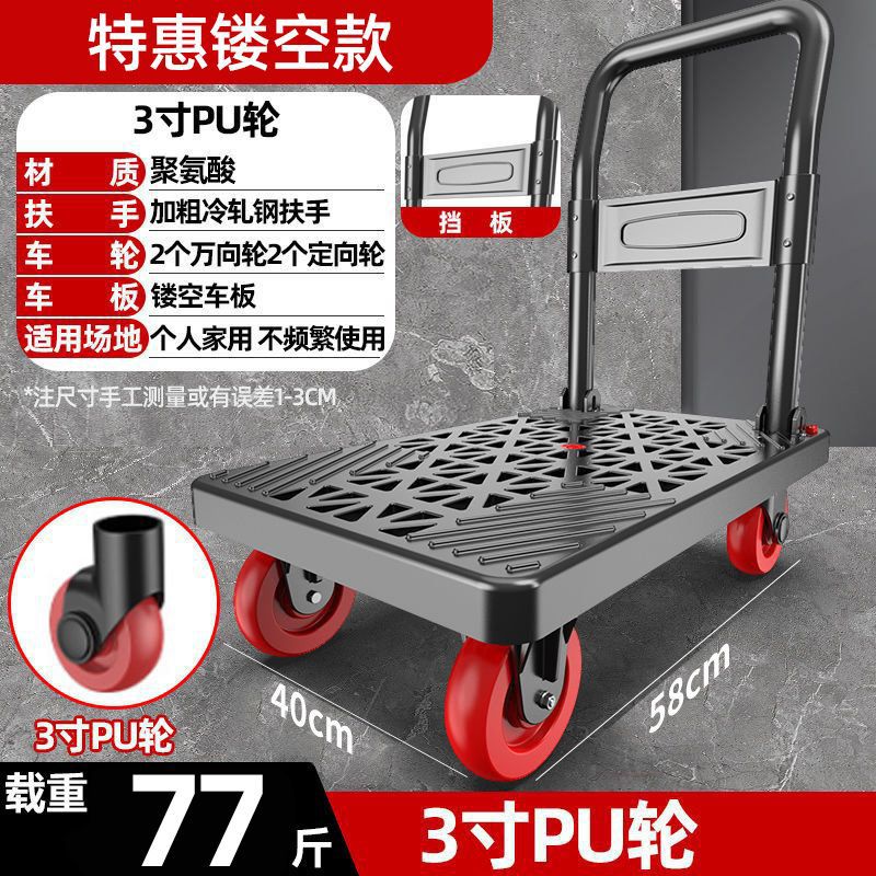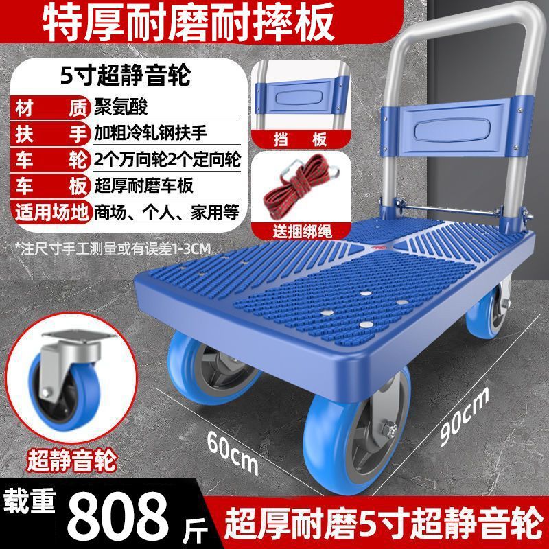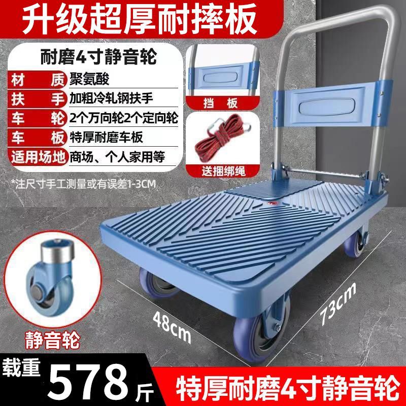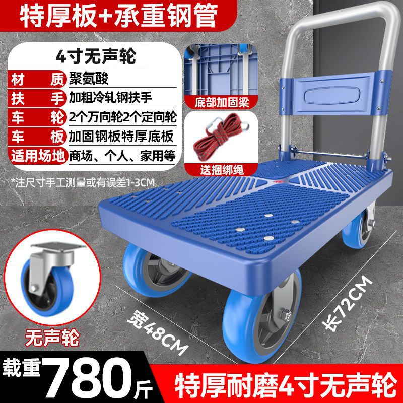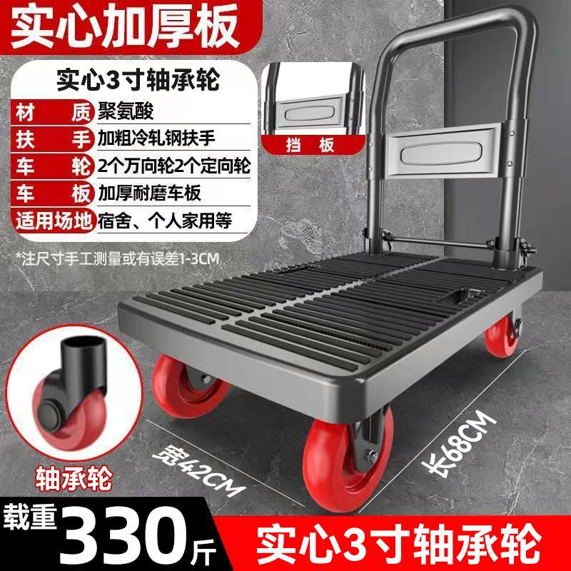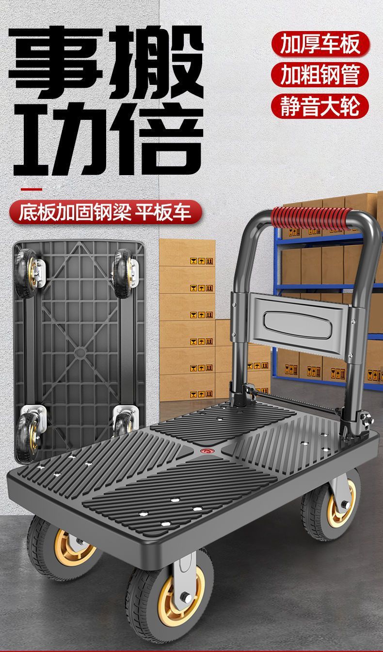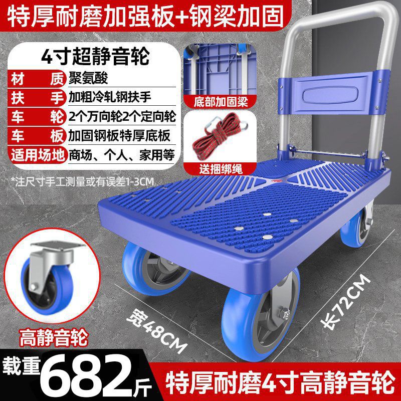 카트 플랫 베드 카트 트레일러 소형 카트 푸시 트럭 접이식 휴대용 조용한 카트 가정용 화물 손수레