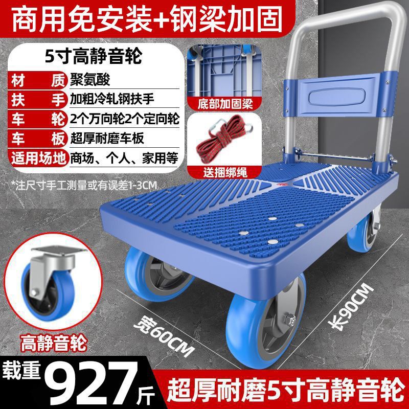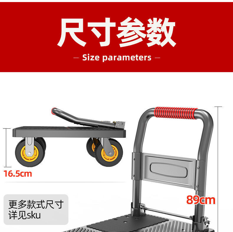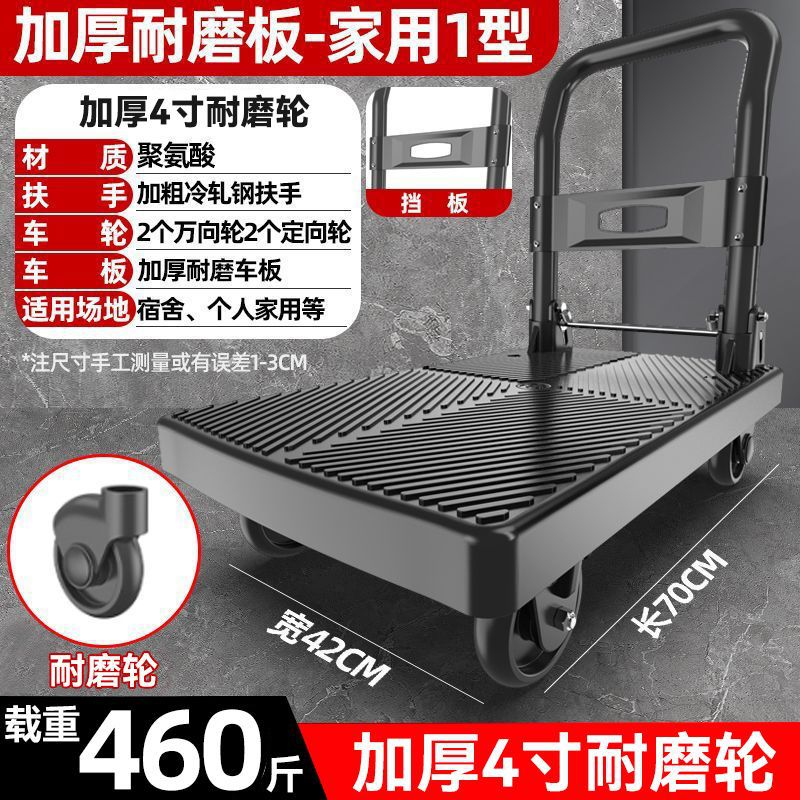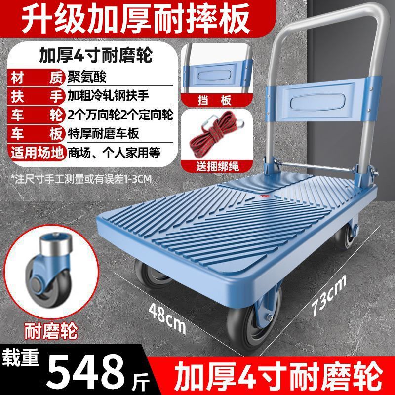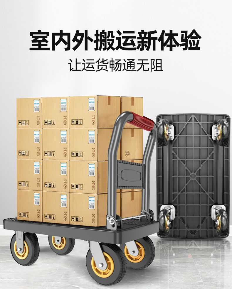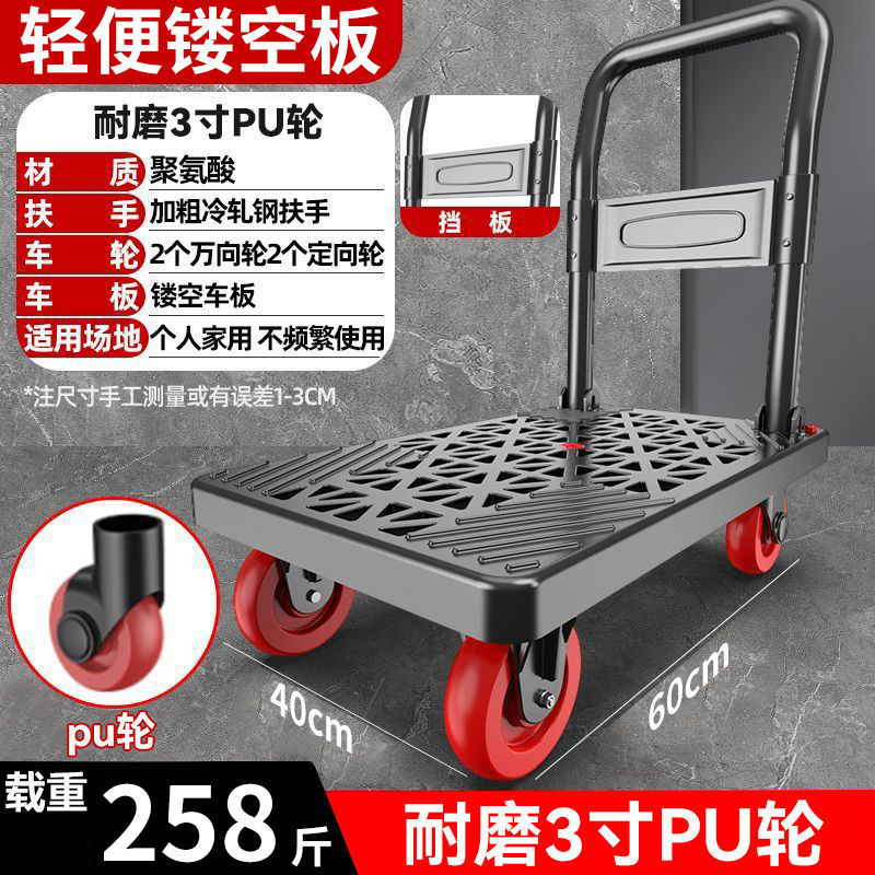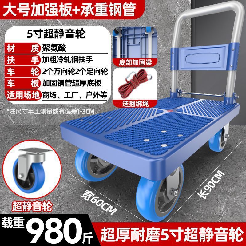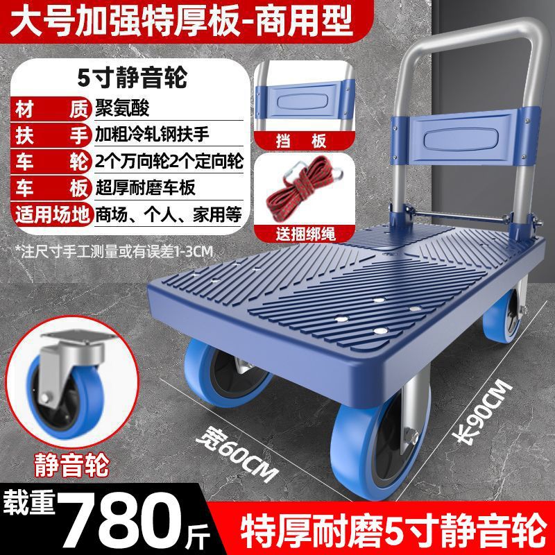 카트 플랫 베드 카트 트레일러 소형 카트 푸시 트럭 접이식 휴대용 조용한 카트 가정용 화물 손수레