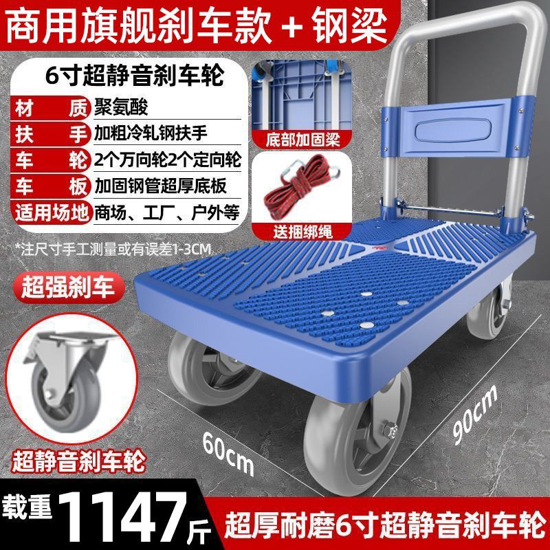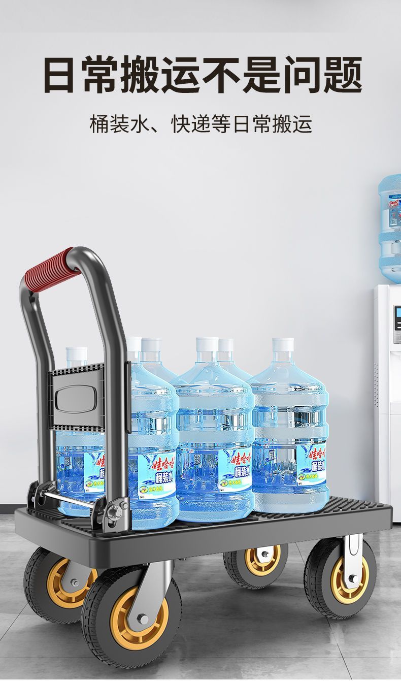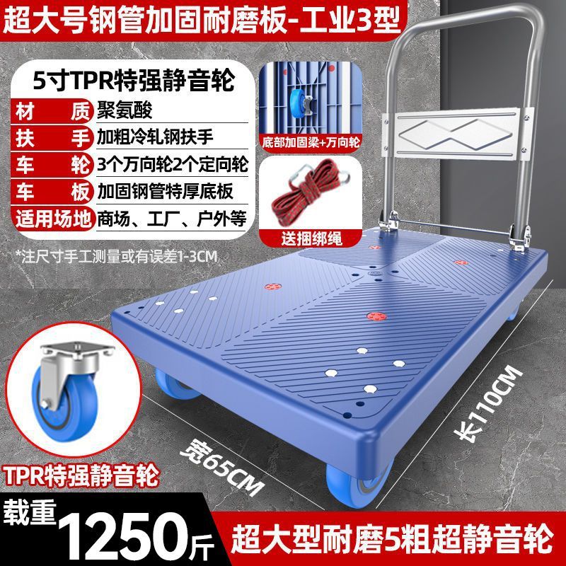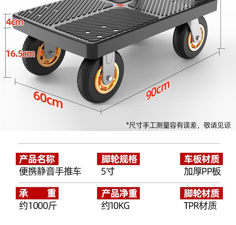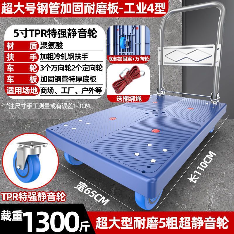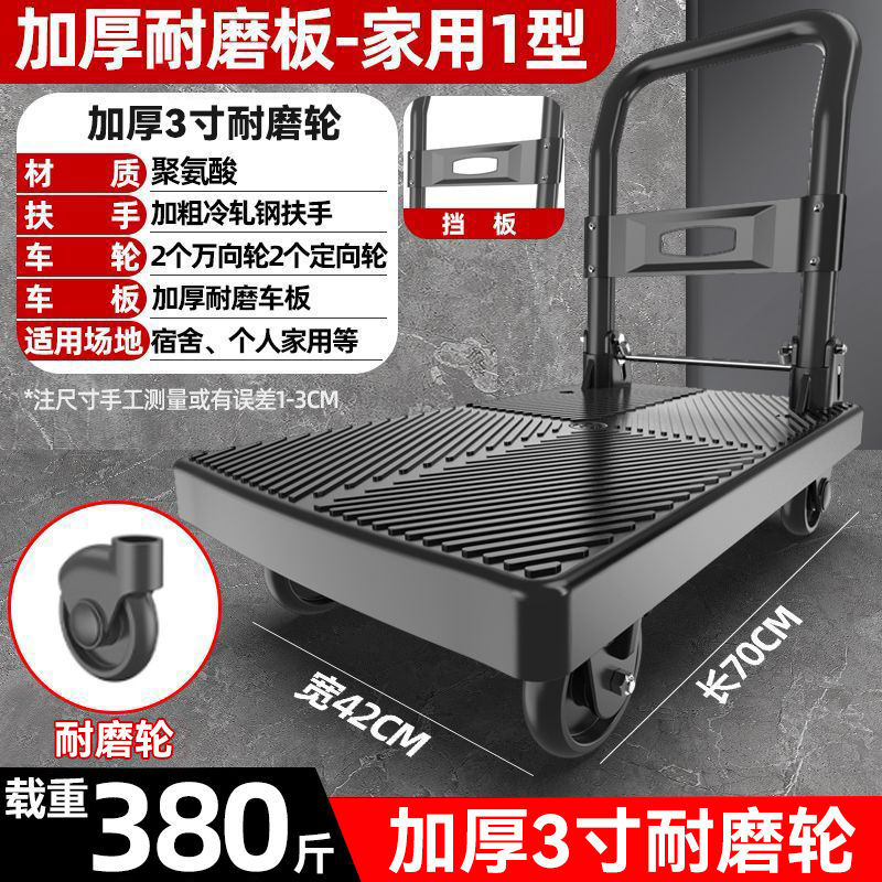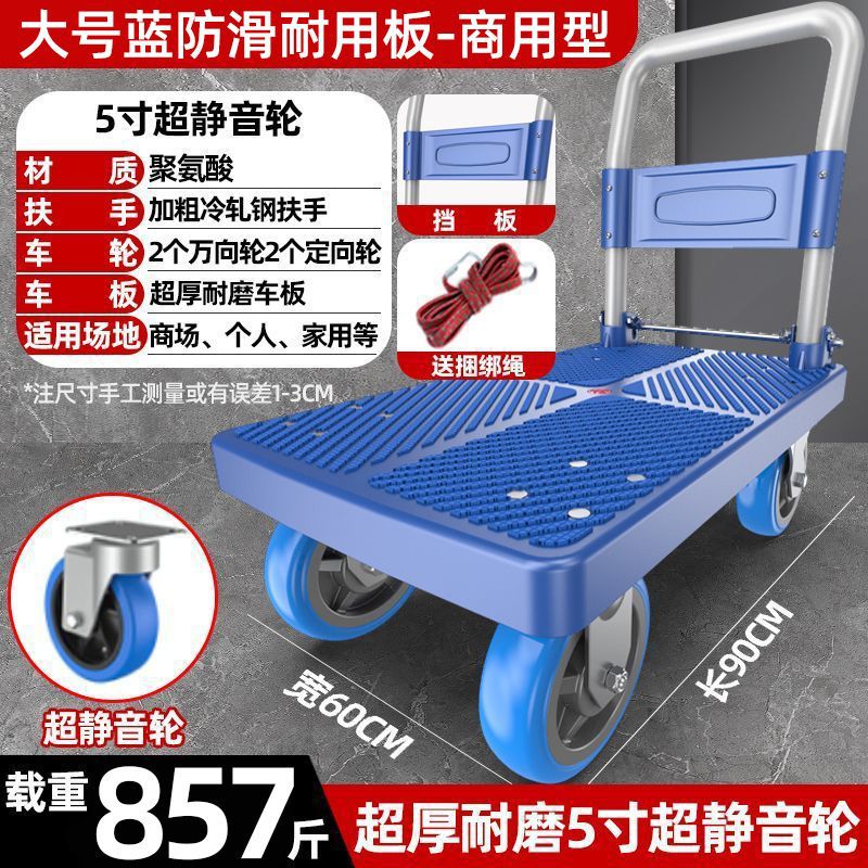 카트 플랫 베드 카트 트레일러 소형 카트 푸시 트럭 접이식 휴대용 조용한 카트 가정용 화물 손수레