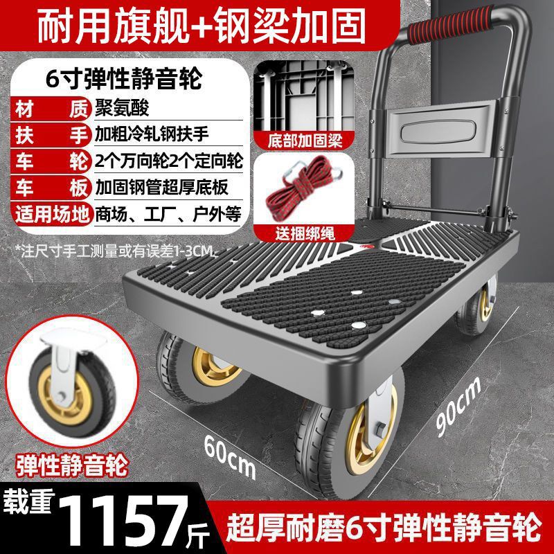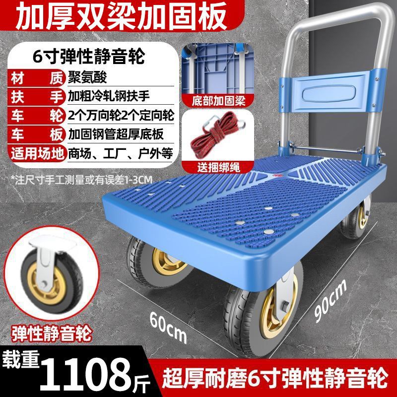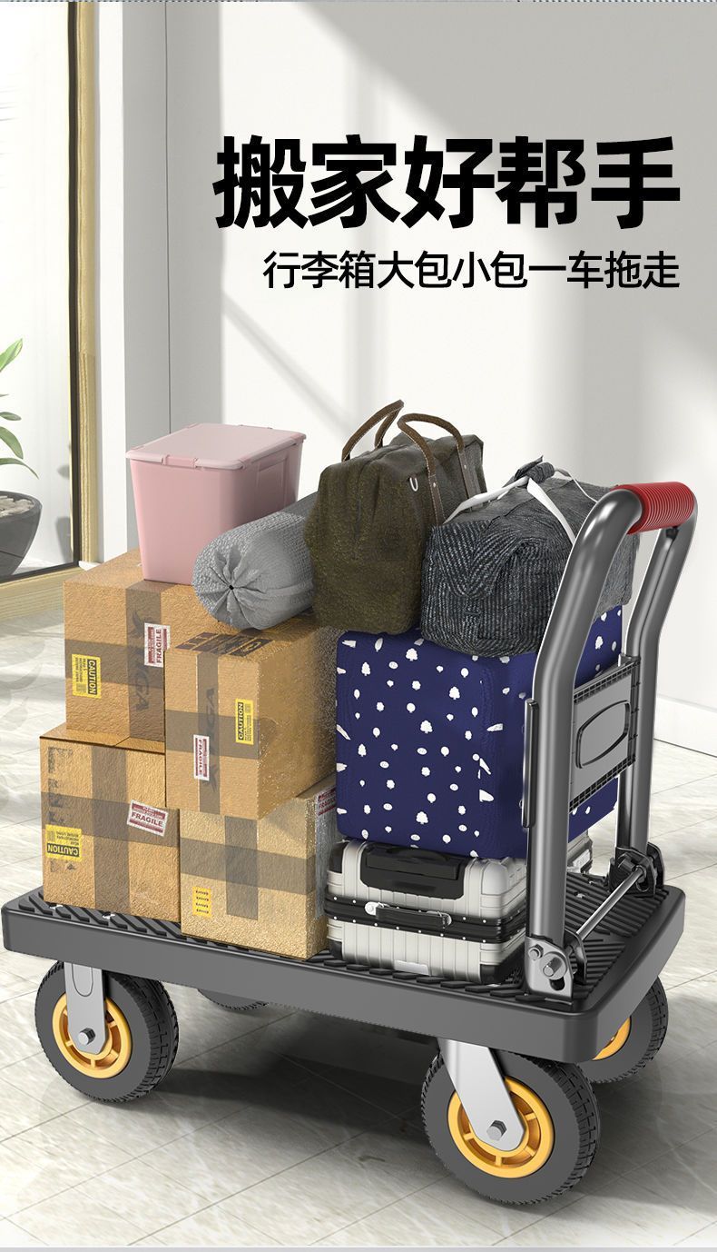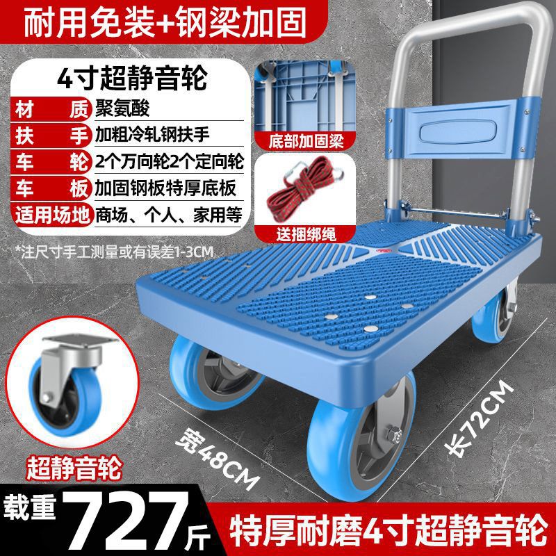 카트 플랫 베드 카트 트레일러 소형 카트 푸시 트럭 접이식 휴대용 조용한 카트 가정용 화물 손수레스토어 가기