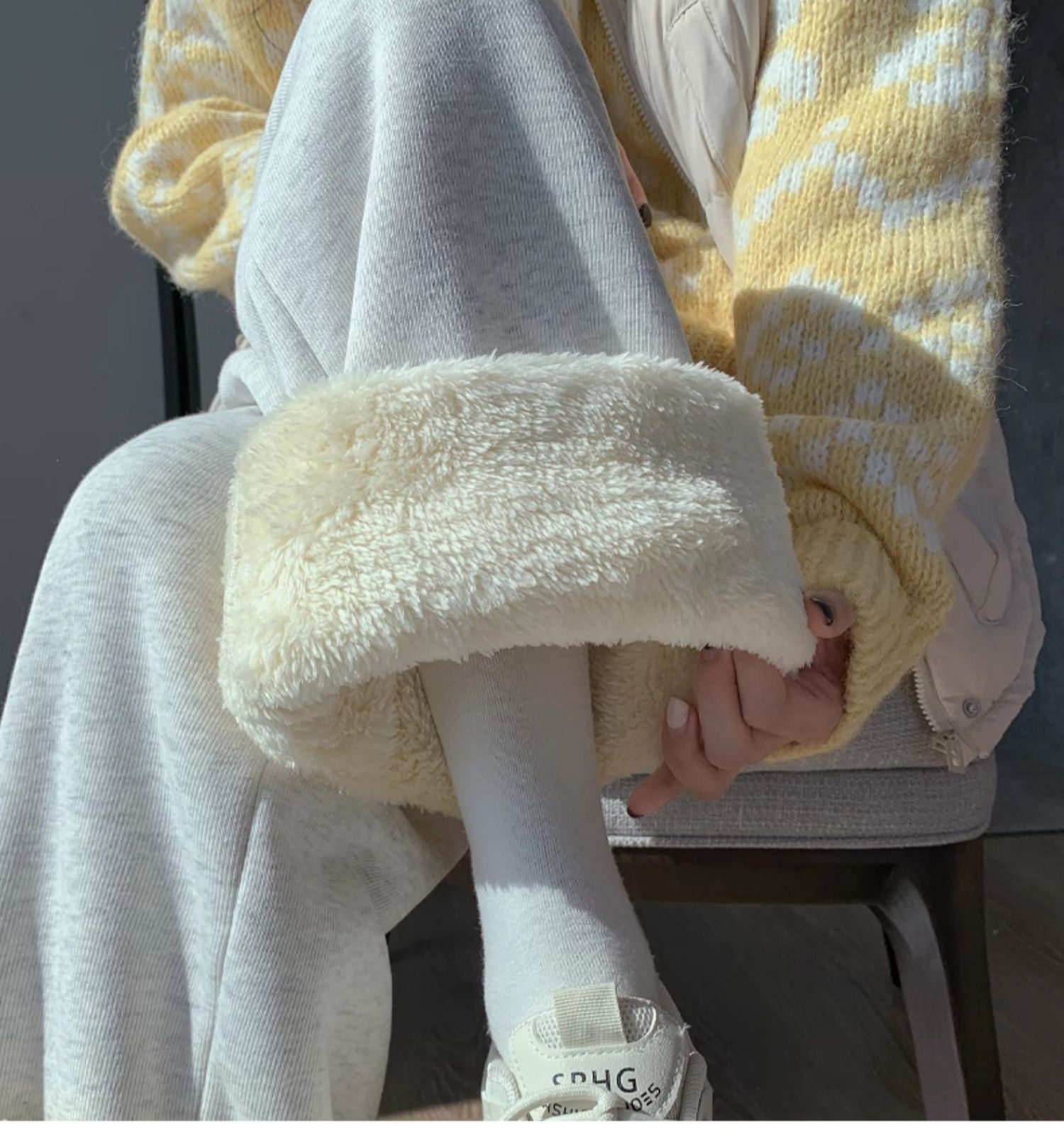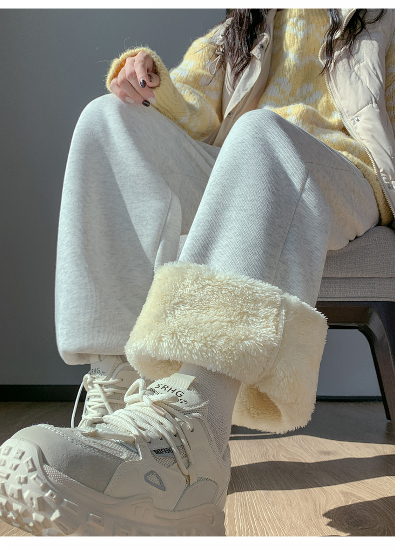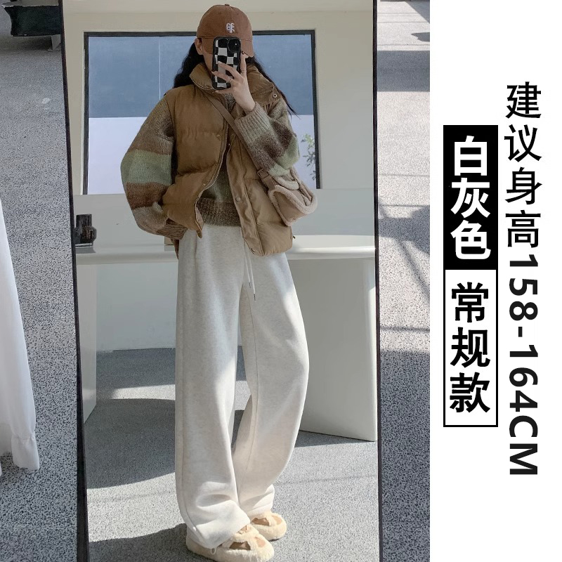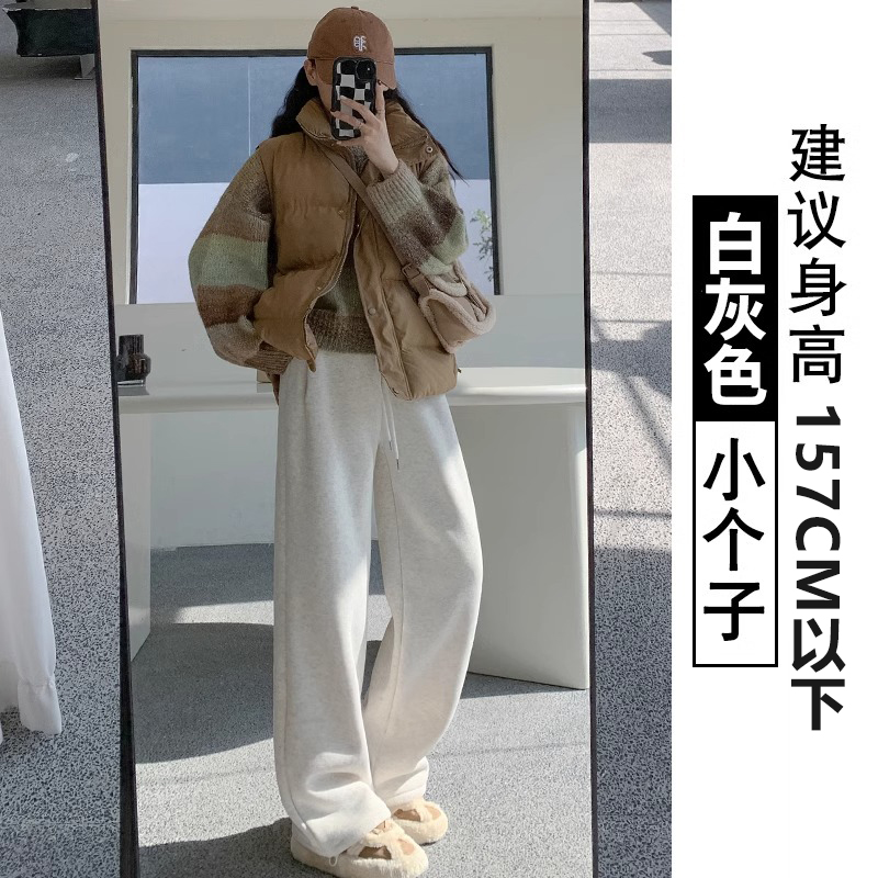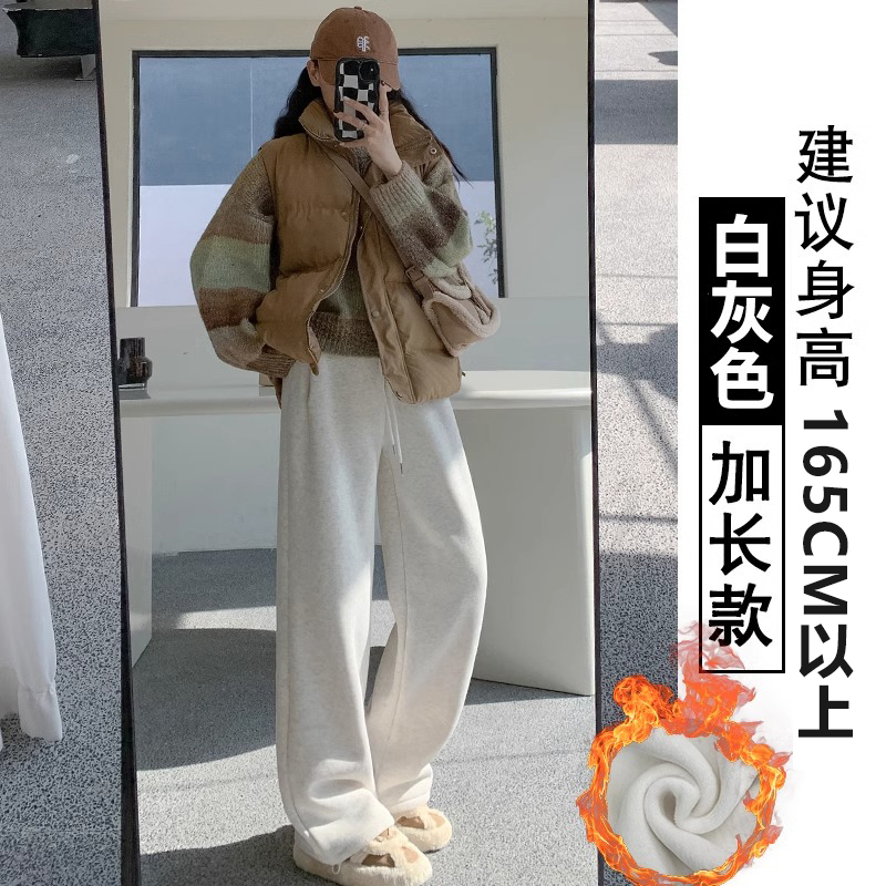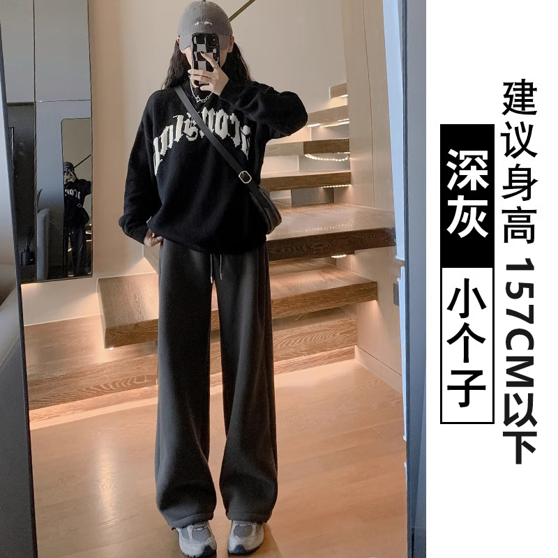 회색 기모 스포츠 바지 여자 가을과 겨울 2024 새로운 도착 느슨한 넓은 다리 면 바지 작은 발 묶은 양고기 운동복스토어 가기
