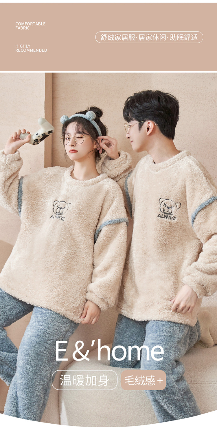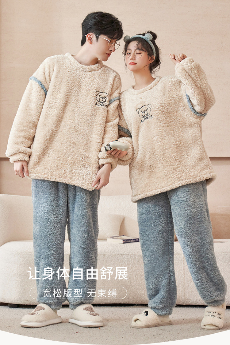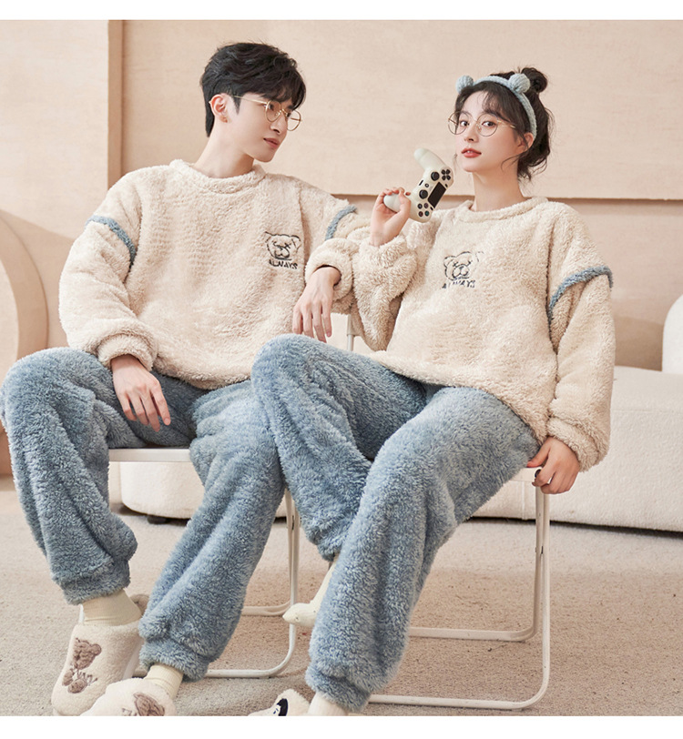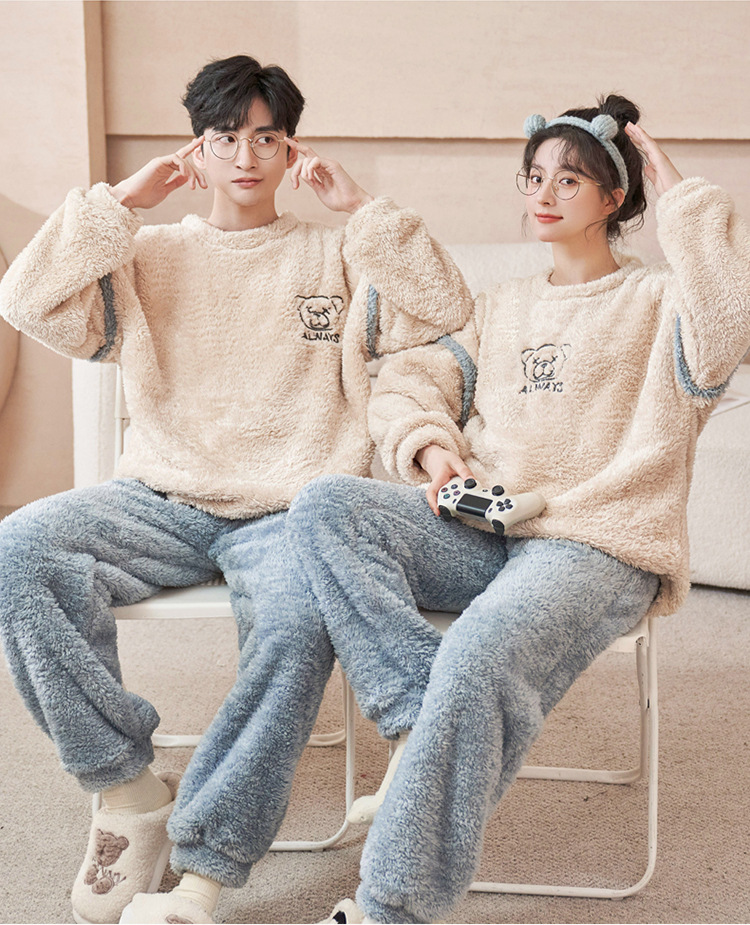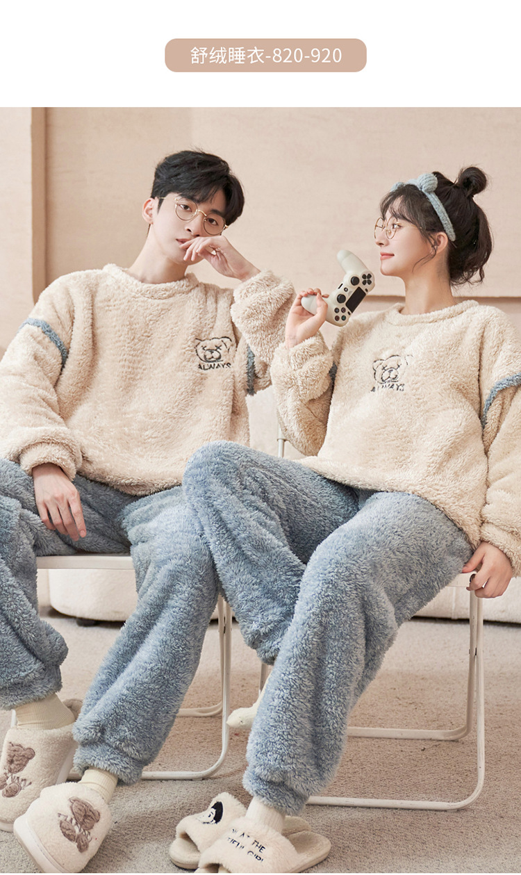 커플 잠옷 산호 양털 기모 가을과 겨울 달콤한 2024 새로운 풀오버 플란넬 여성 홈 의류 남성스토어 가기