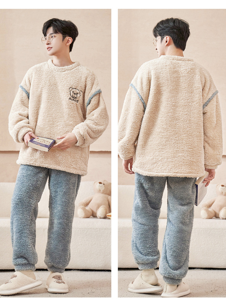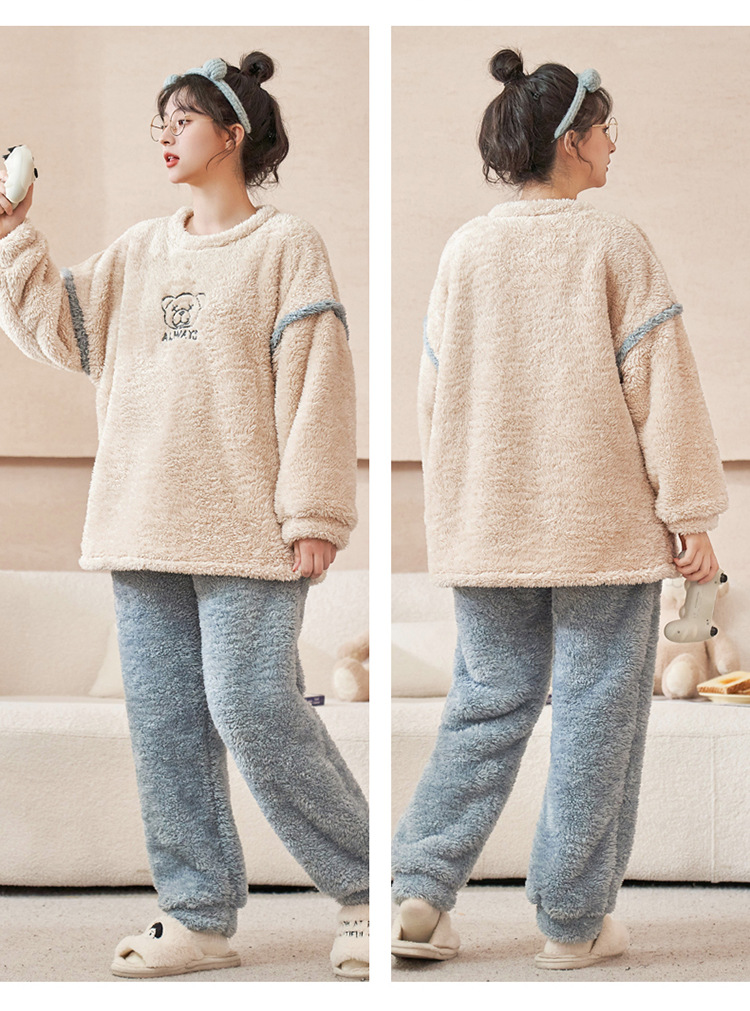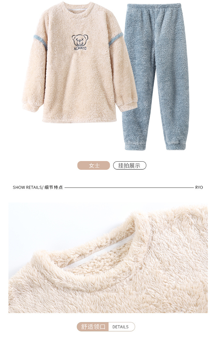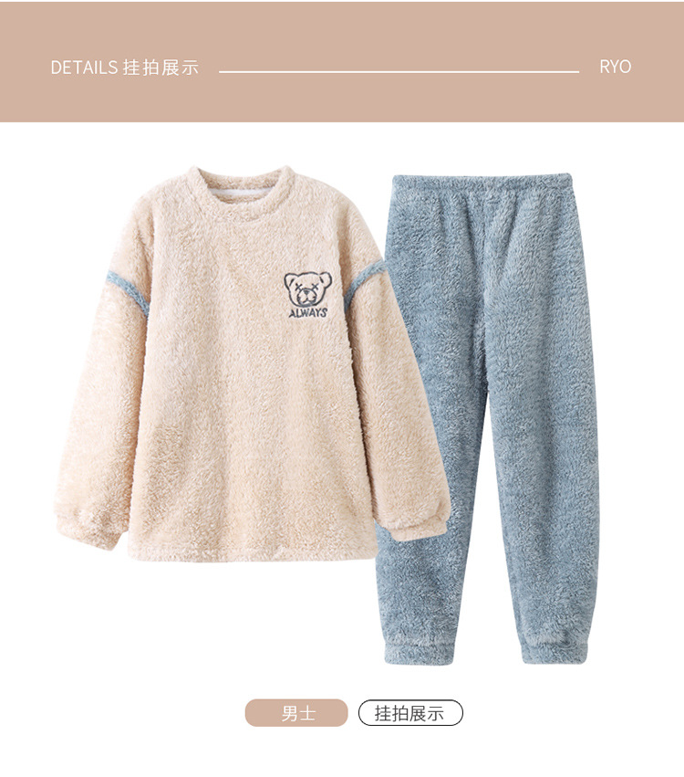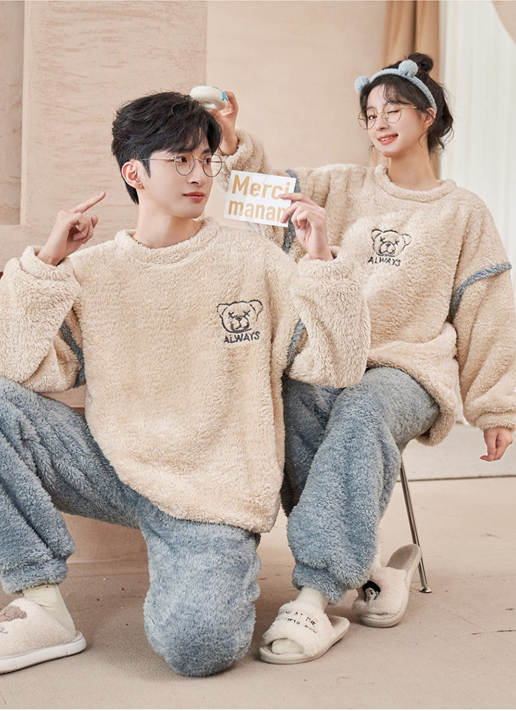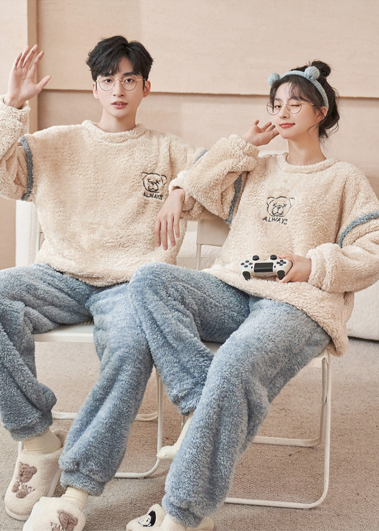 커플 잠옷 산호 양털 기모 가을과 겨울 달콤한 2024 새로운 풀오버 플란넬 여성 홈 의류 남성스토어 가기
