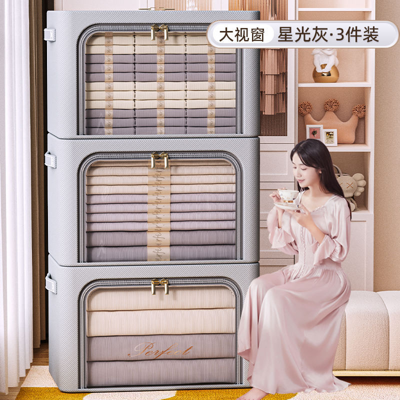 3 개의 옷 저장 상자 가정용 대용량 옷장 옷 상자는 유물 보관 바구니 가방을 구성합니다.스토어 가기