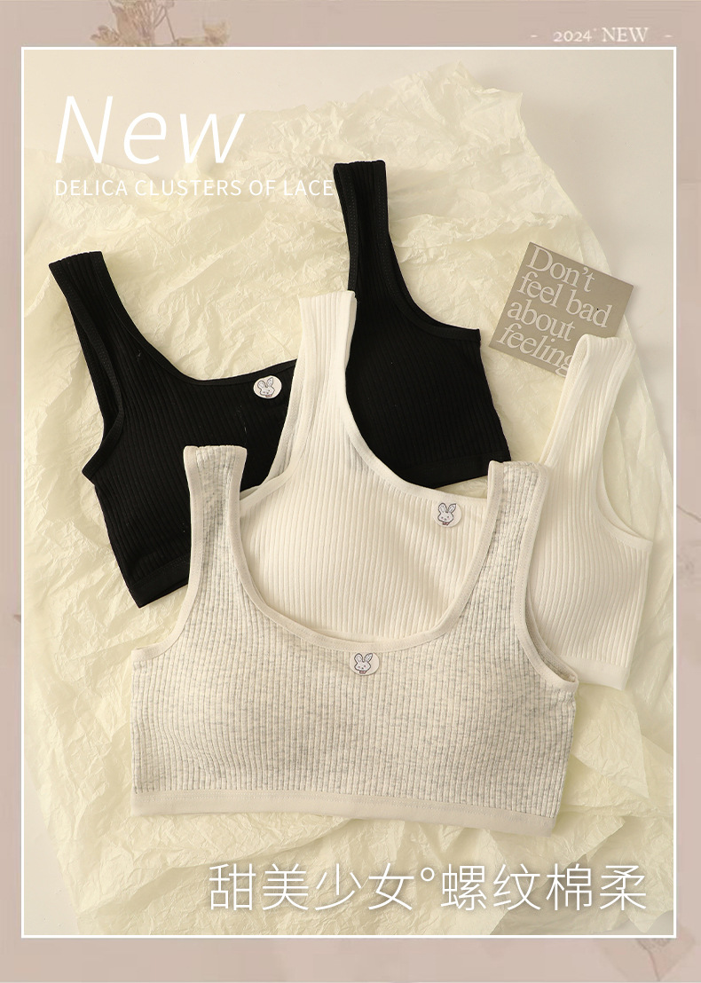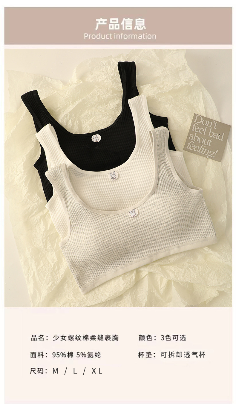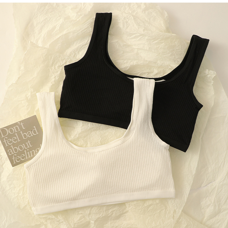 중학생을위한 발달 소녀 속옷 분리 가능한 림리스 스포츠 튜브 탑 안티 범프 U 자형 스레드 조끼