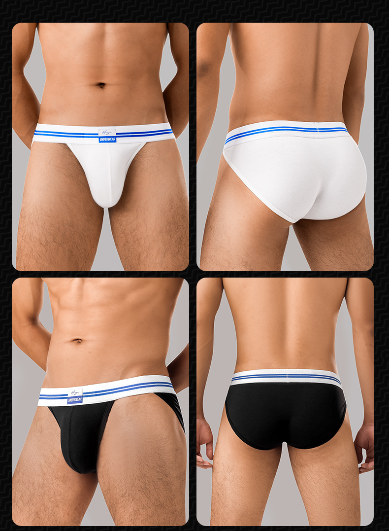 섹시한 남자 하이 포크 브리프 솔리드 컬러 스포츠 피트니스 브리프 스트라이프 벨트 통기성 땀 흡수 면 브리프스토어 가기