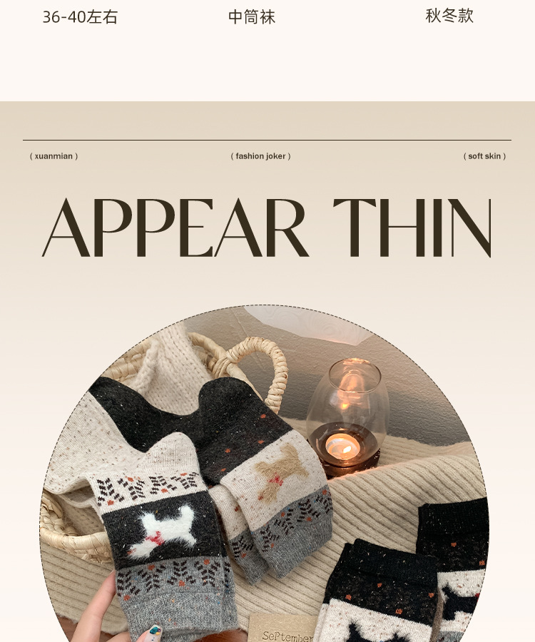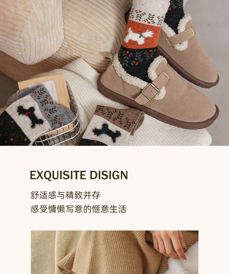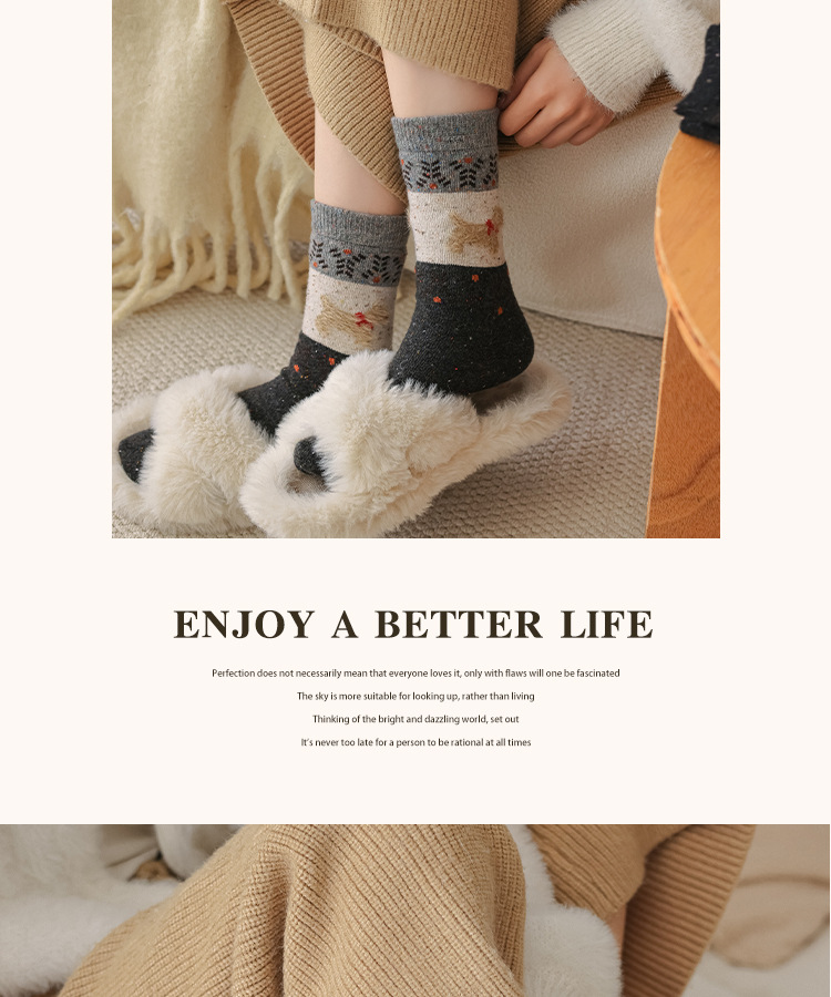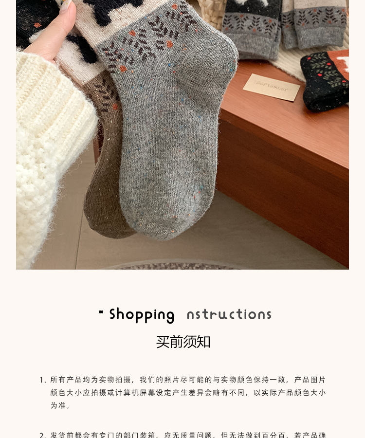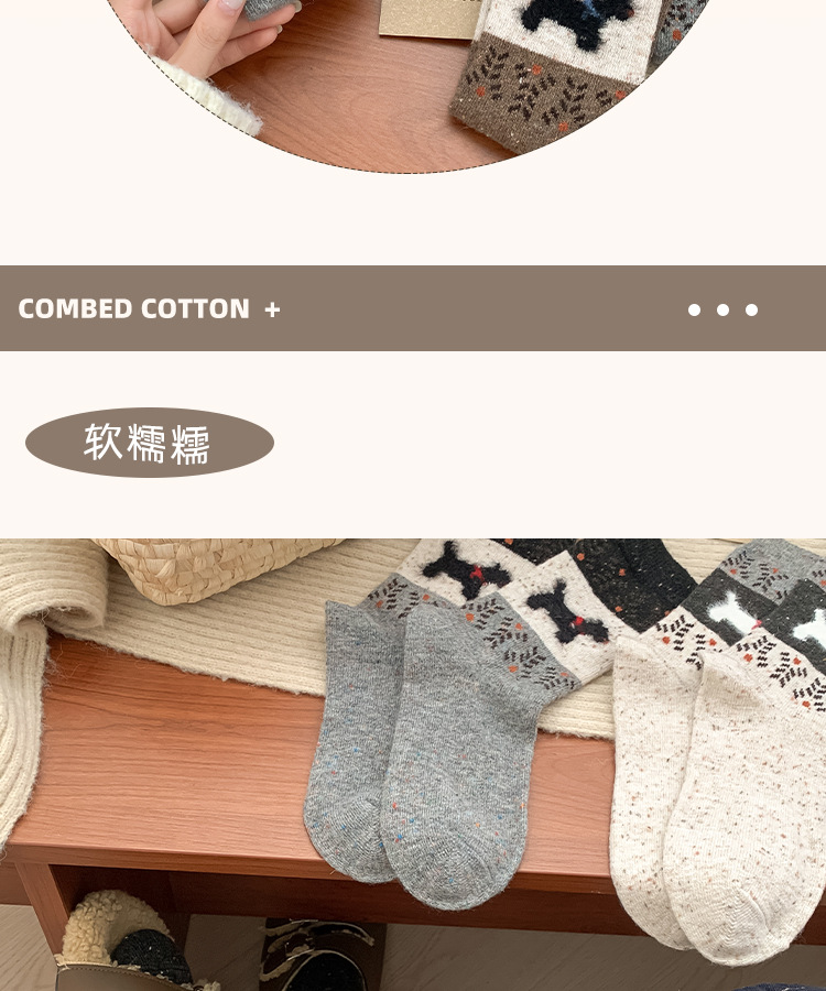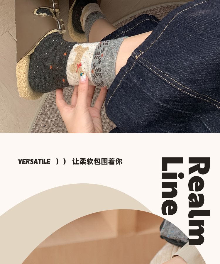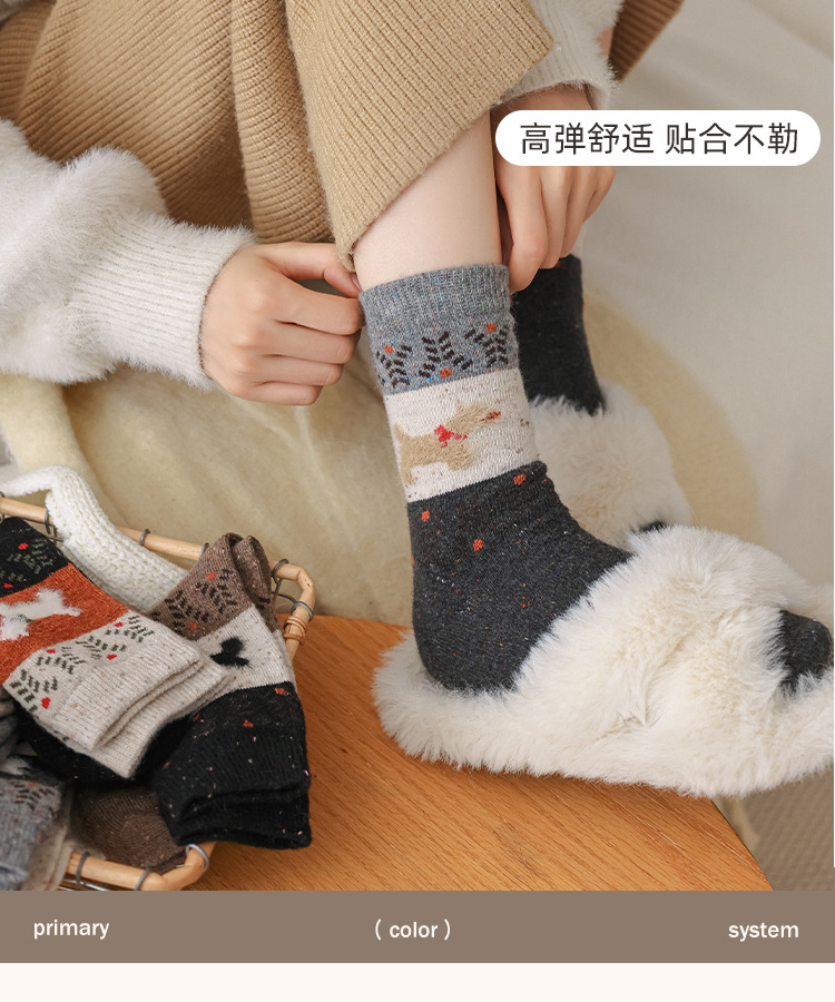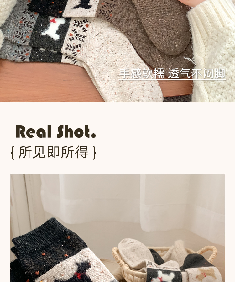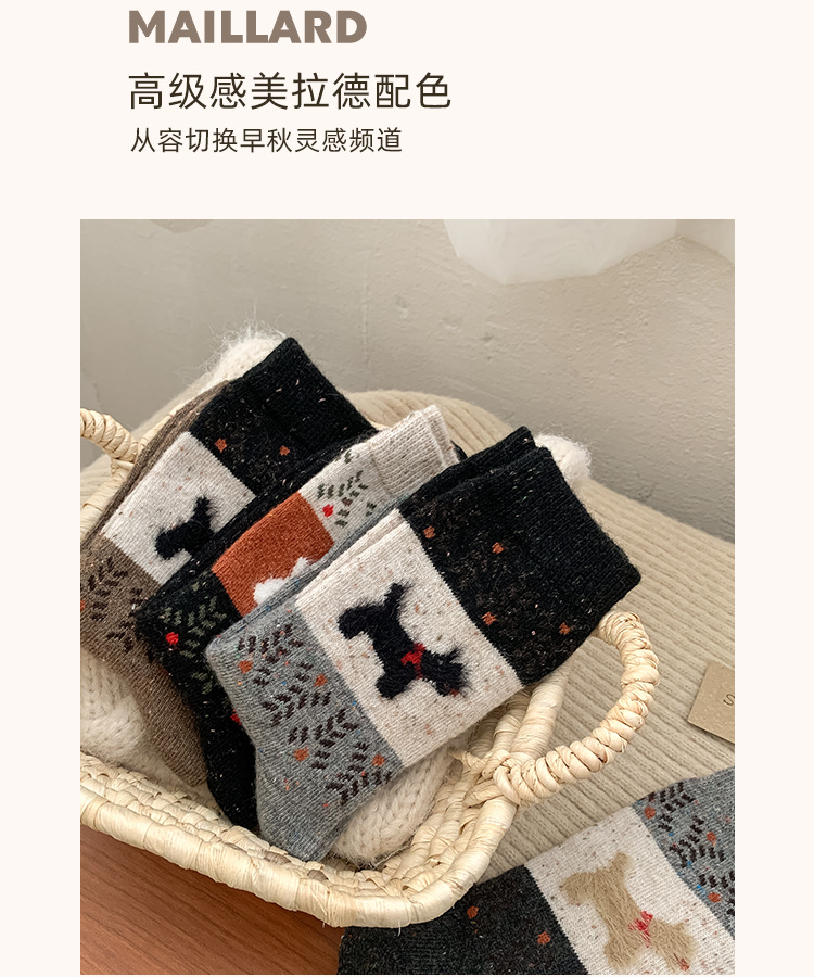 한국 스타일의 컬러 배색 만화 강아지 양모 보온 양말 도매 트렌디하고 개성 있는 겨울 여성용 두꺼운 양말스토어 가기