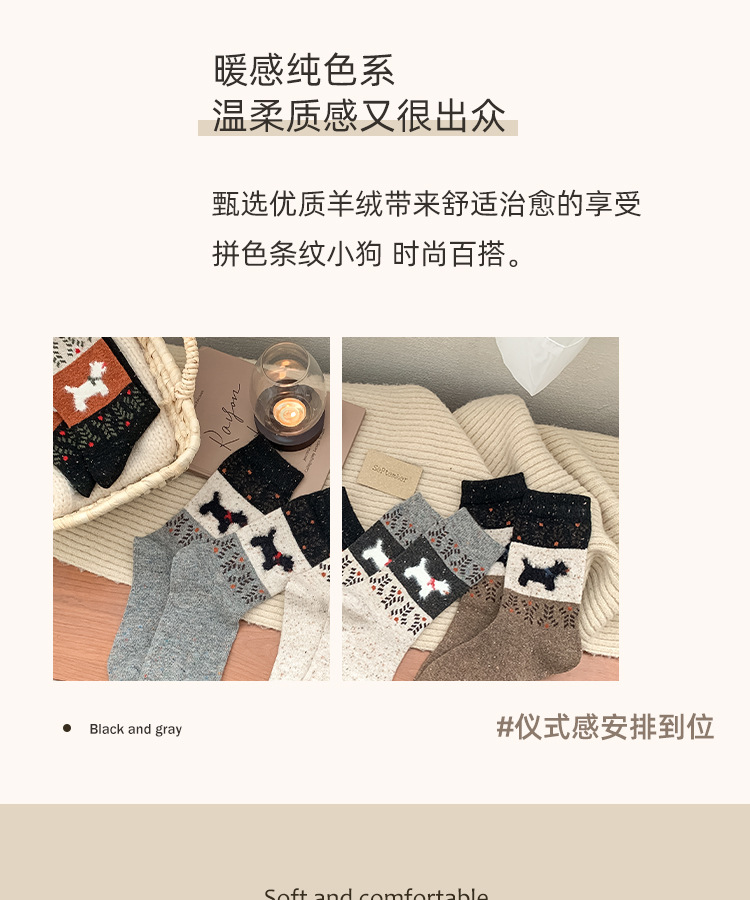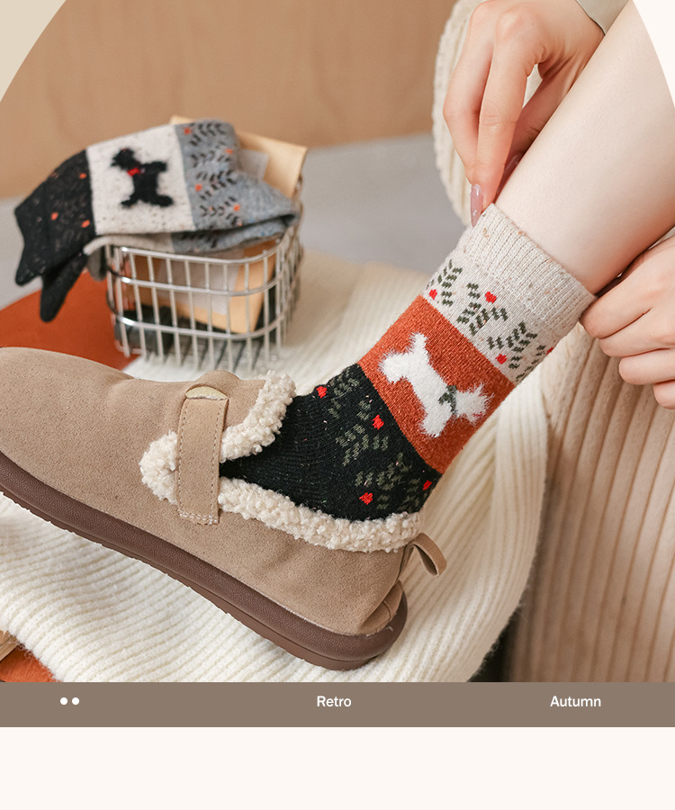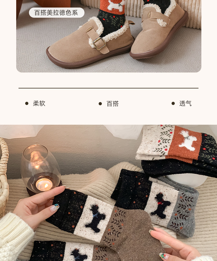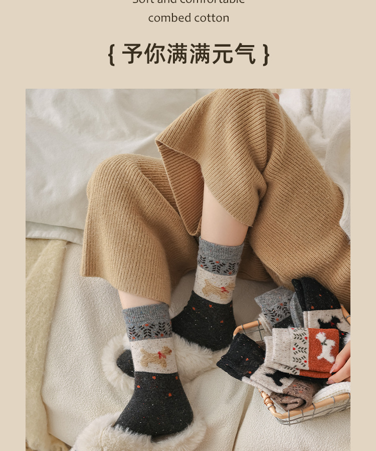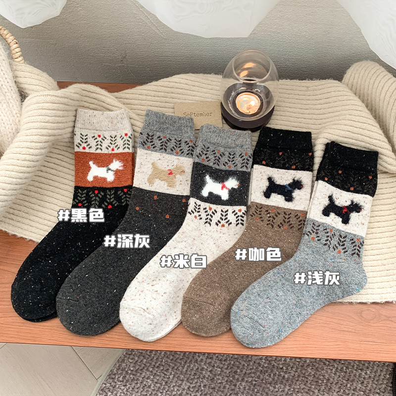 한국 스타일의 컬러 배색 만화 강아지 양모 보온 양말 도매 트렌디하고 개성 있는 겨울 여성용 두꺼운 양말