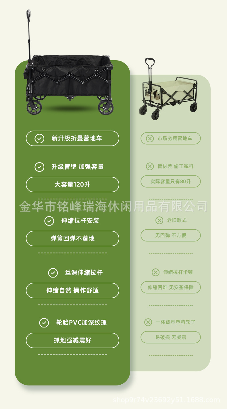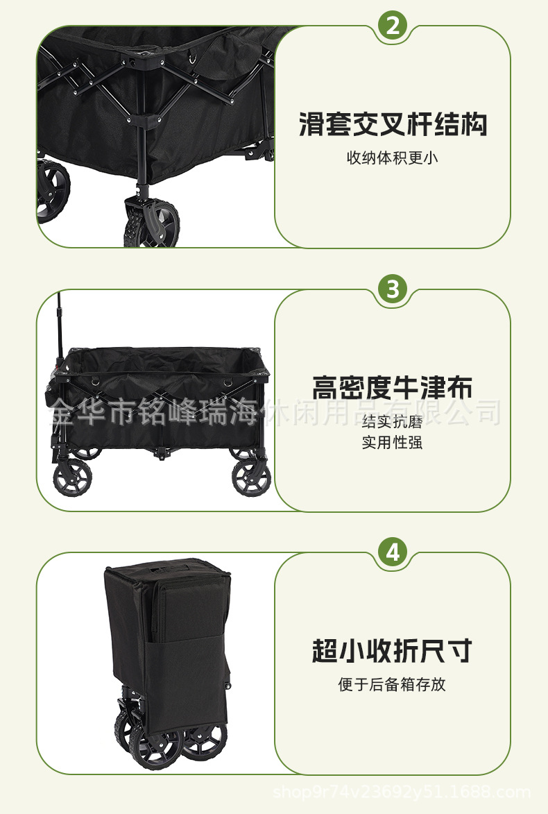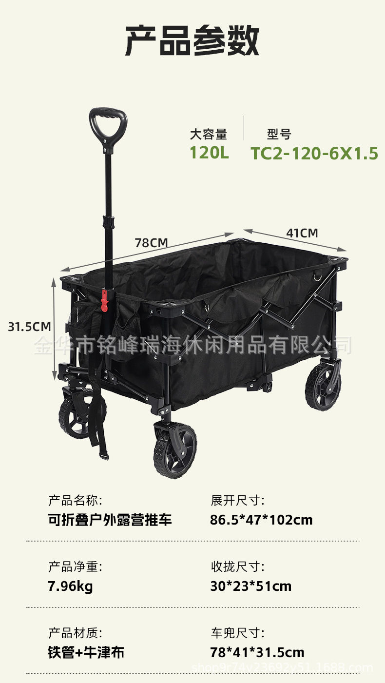 클래식 블랙 접이식 캠핑 트레일러 휴대용 야외 4 륜 트롤리 트롤리 좁은 휠 수집 캠핑스토어 가기