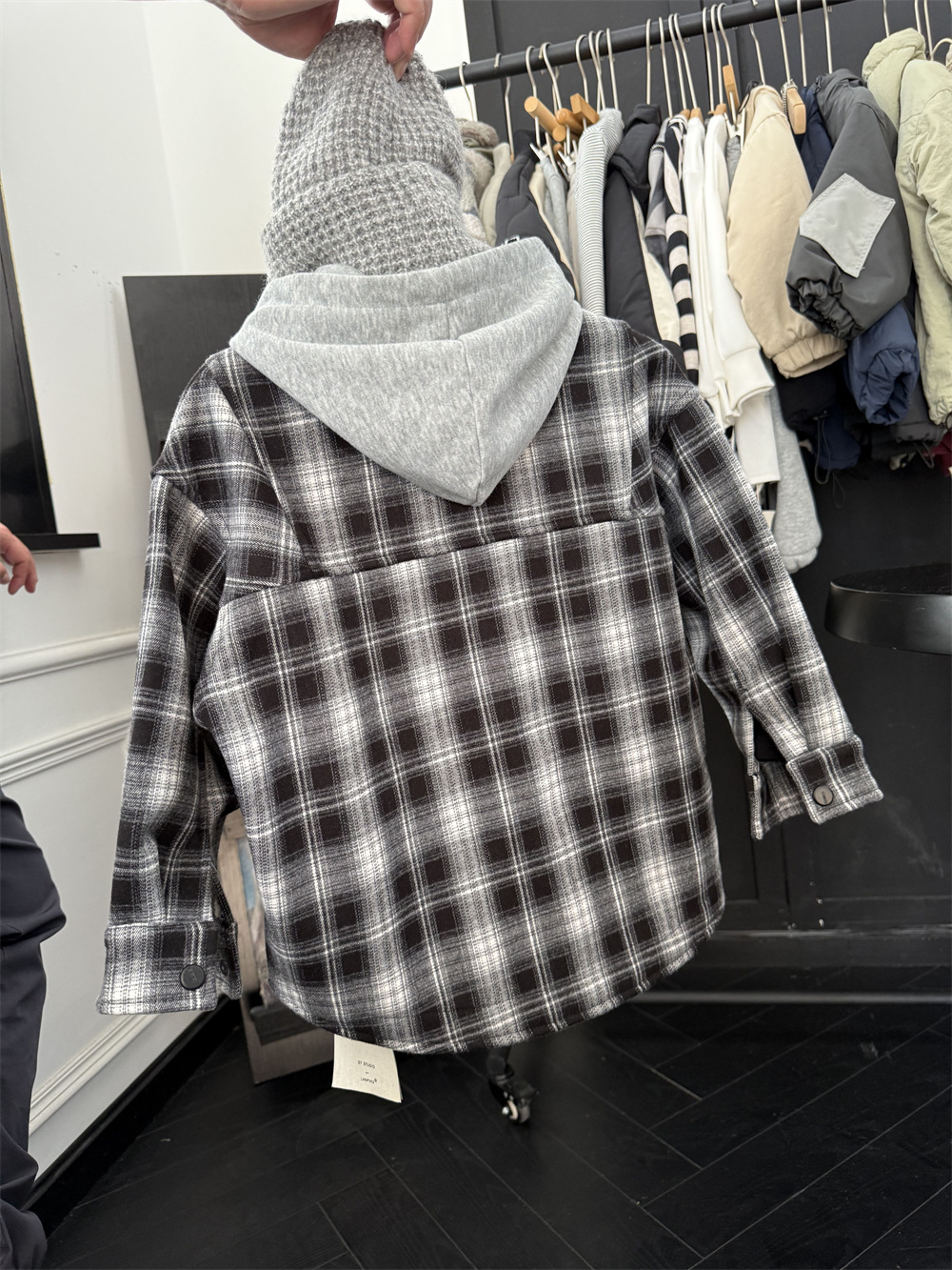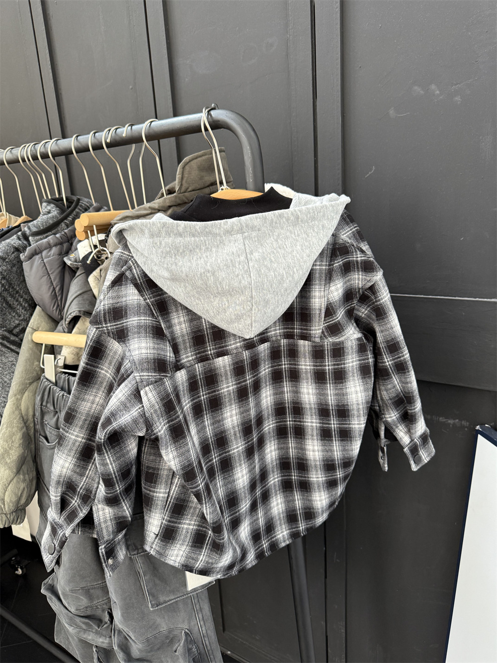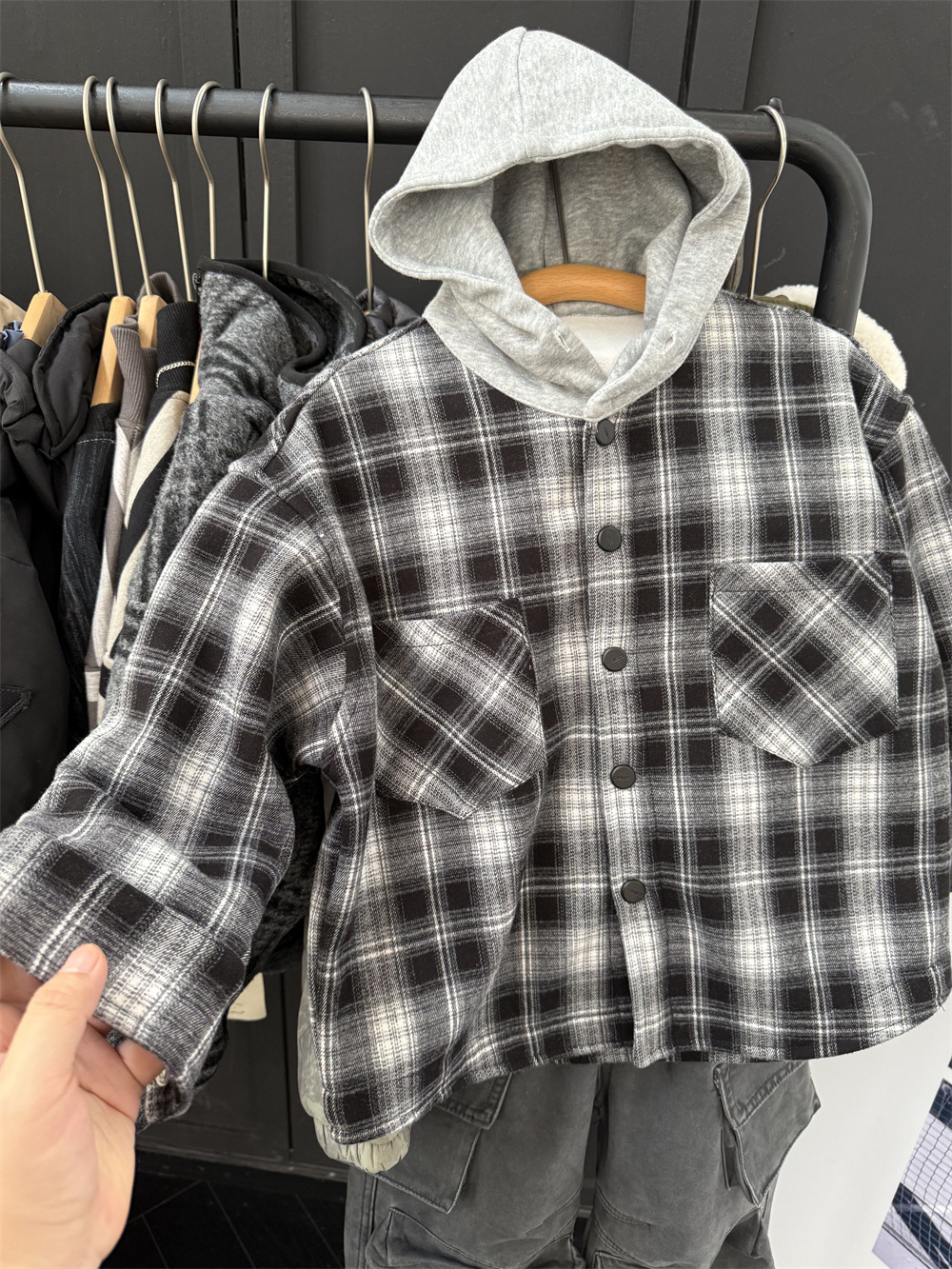 男童冬季加绒格子连帽衬衫外套