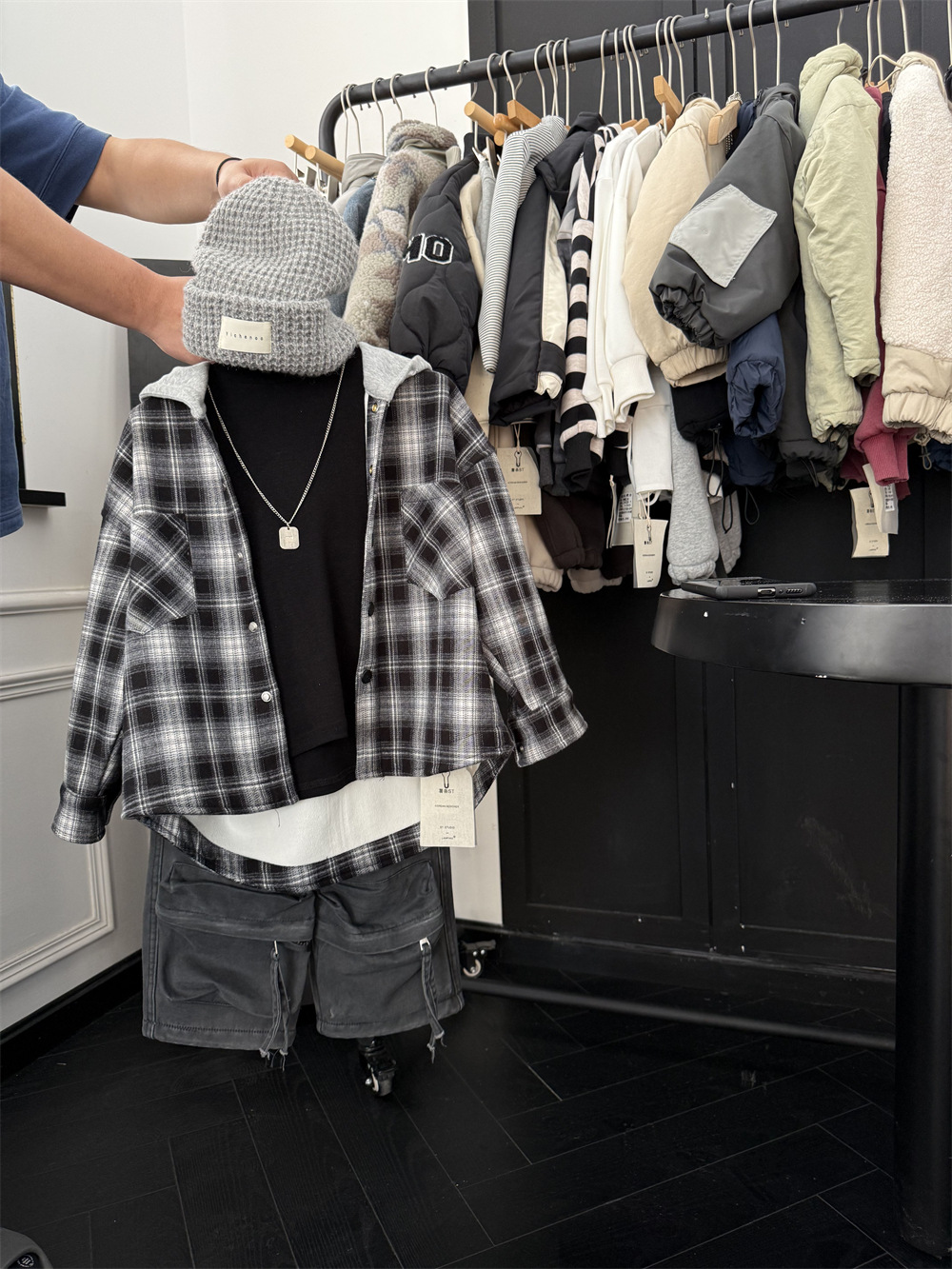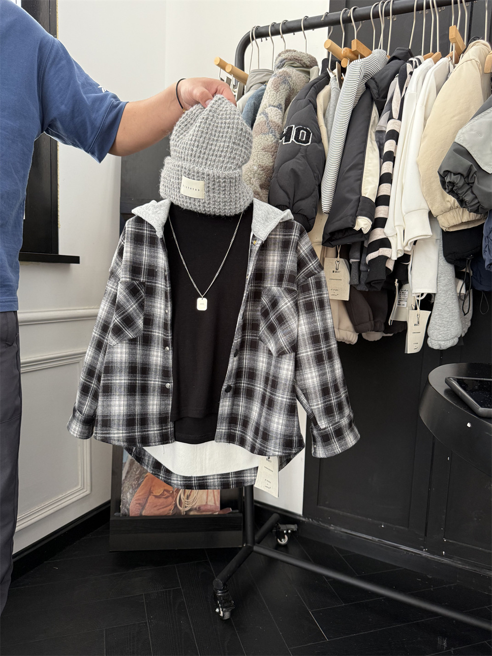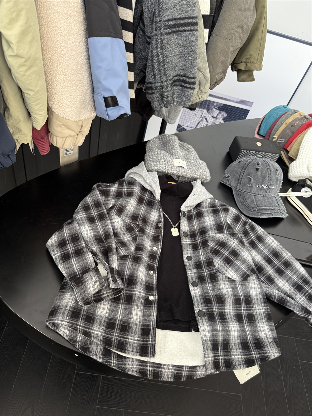 2024 겨울 어린이 미국 가짜 투피스 기모 격자 무늬 셔츠 소년의 트렌디 한 쿨 느슨한 원피스 벨벳 두꺼운 재킷스토어 가기