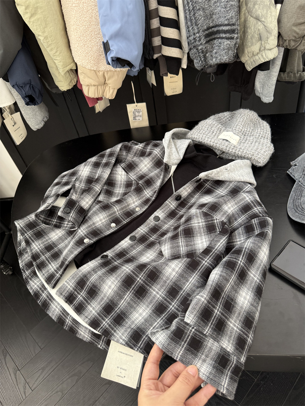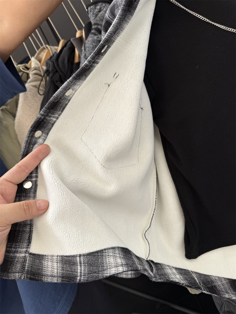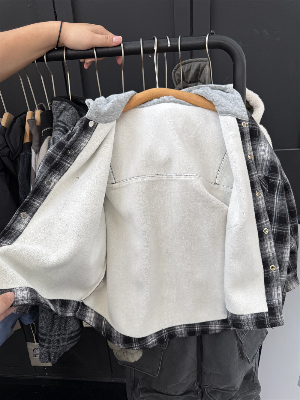 面料:TR格子复合 一体绒,手感带磨毛,很软糯哈