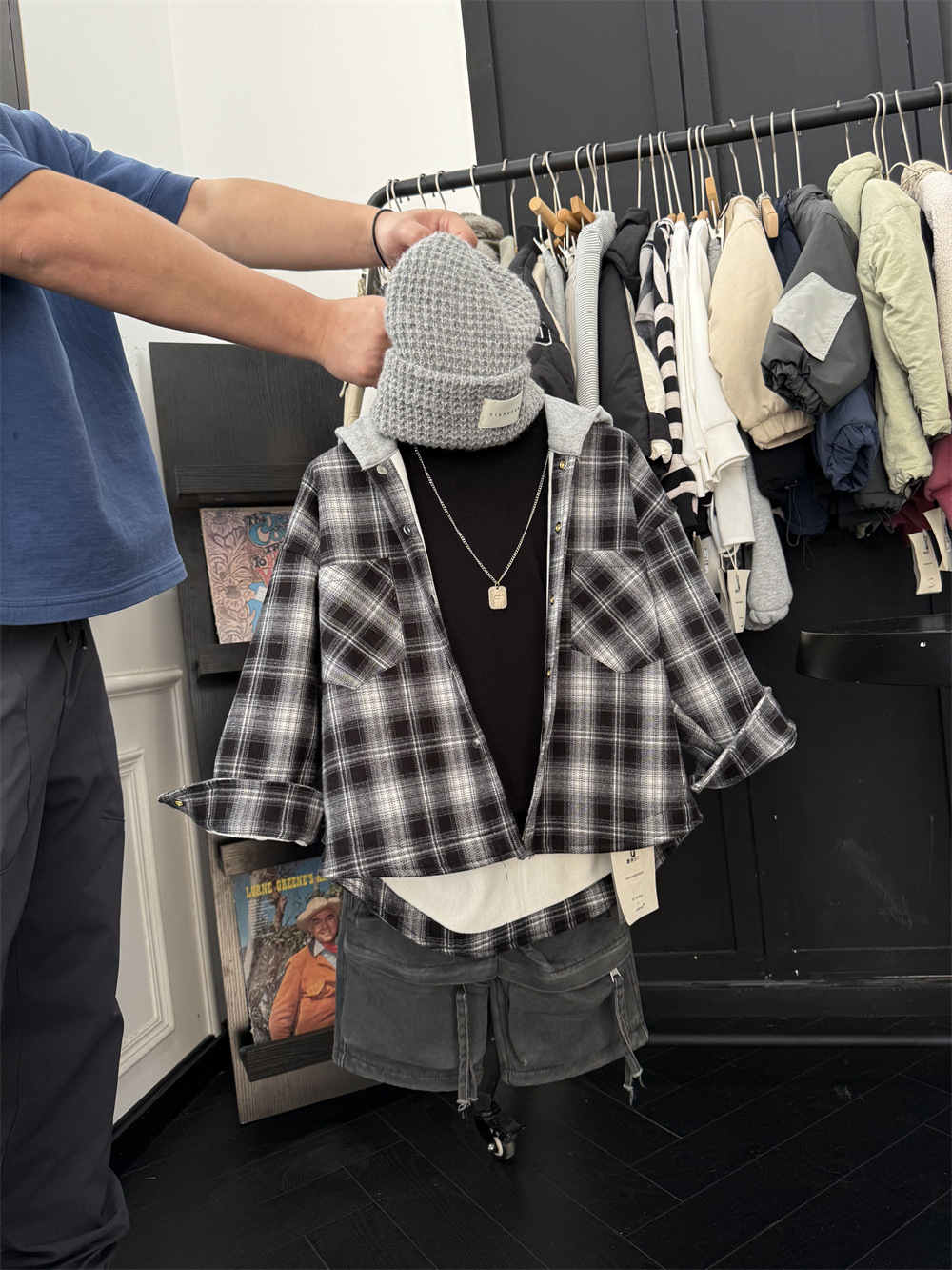 假两件连帽的款式,很松弛的感觉