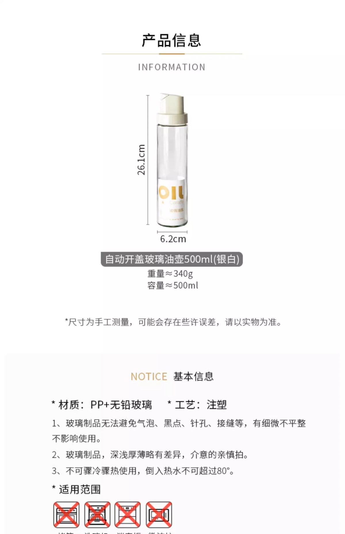 오일 항아리 가정용 주방 간장 식초 조미료 병 세트 오일 프리 누출 방지 유리 오일 항아리 자동 개통 및 닫기스토어 가기