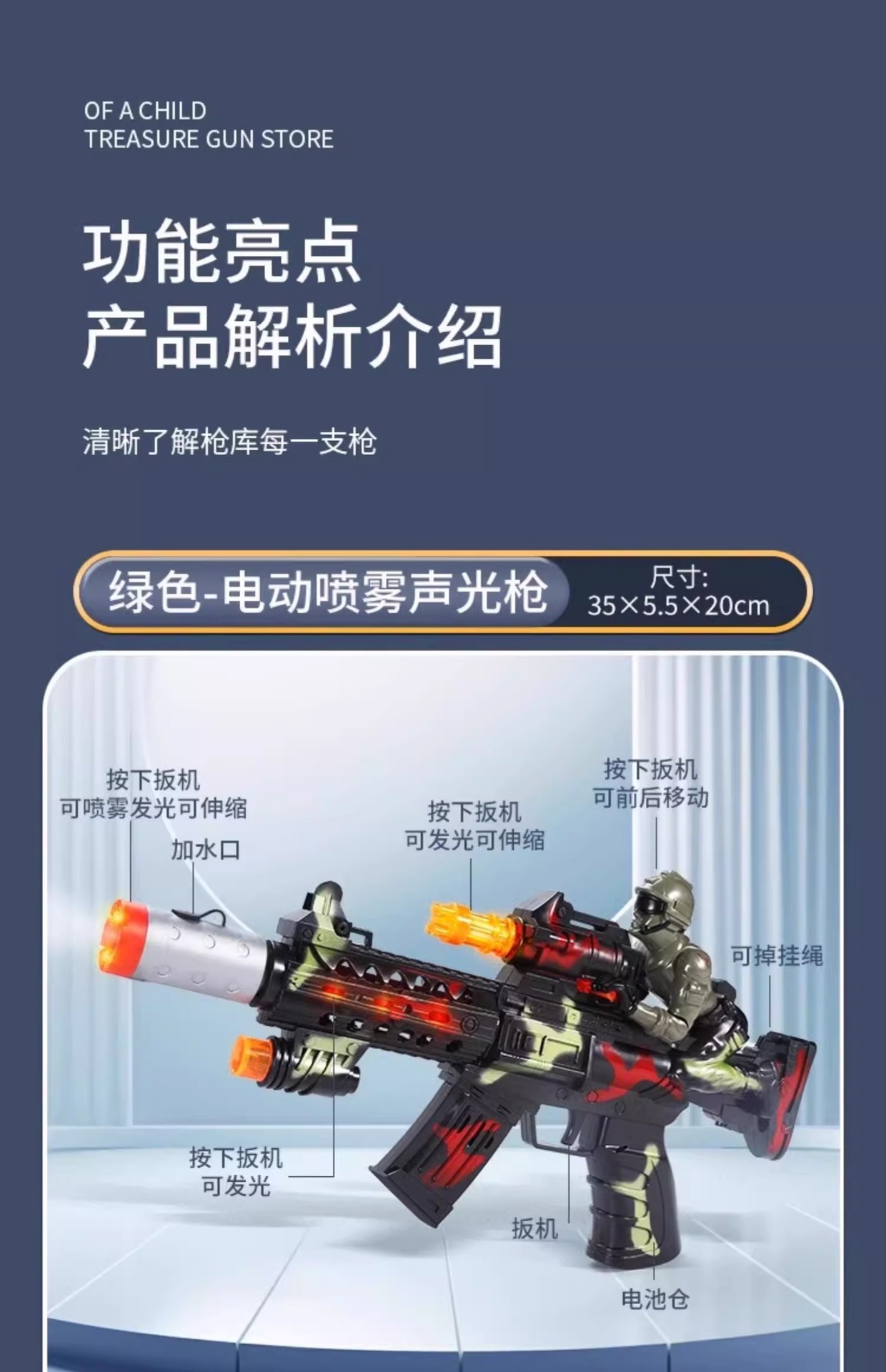 스프레이 전기 음악 진동 기관단총 작은 권총 촬영 소년 야시장 매점 어린이 교육 장난감 도매스토어 가기