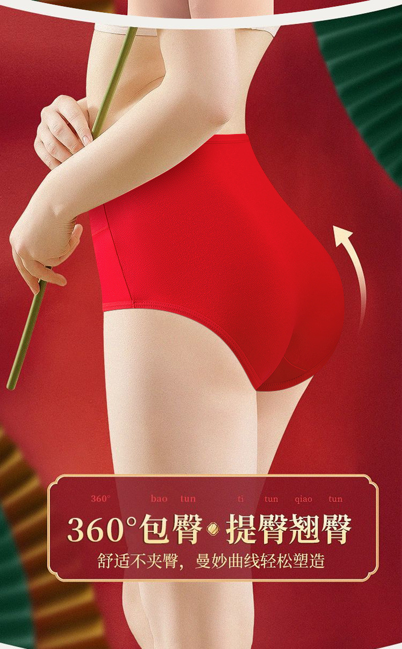 레드 브닝 니언 하이 웨이스트 속옷 여성용 퓨어 코튼 플랫 코너 따뜻한 복부 힙 리프팅 여성용 퓨어 코튼 반바지 통통녀