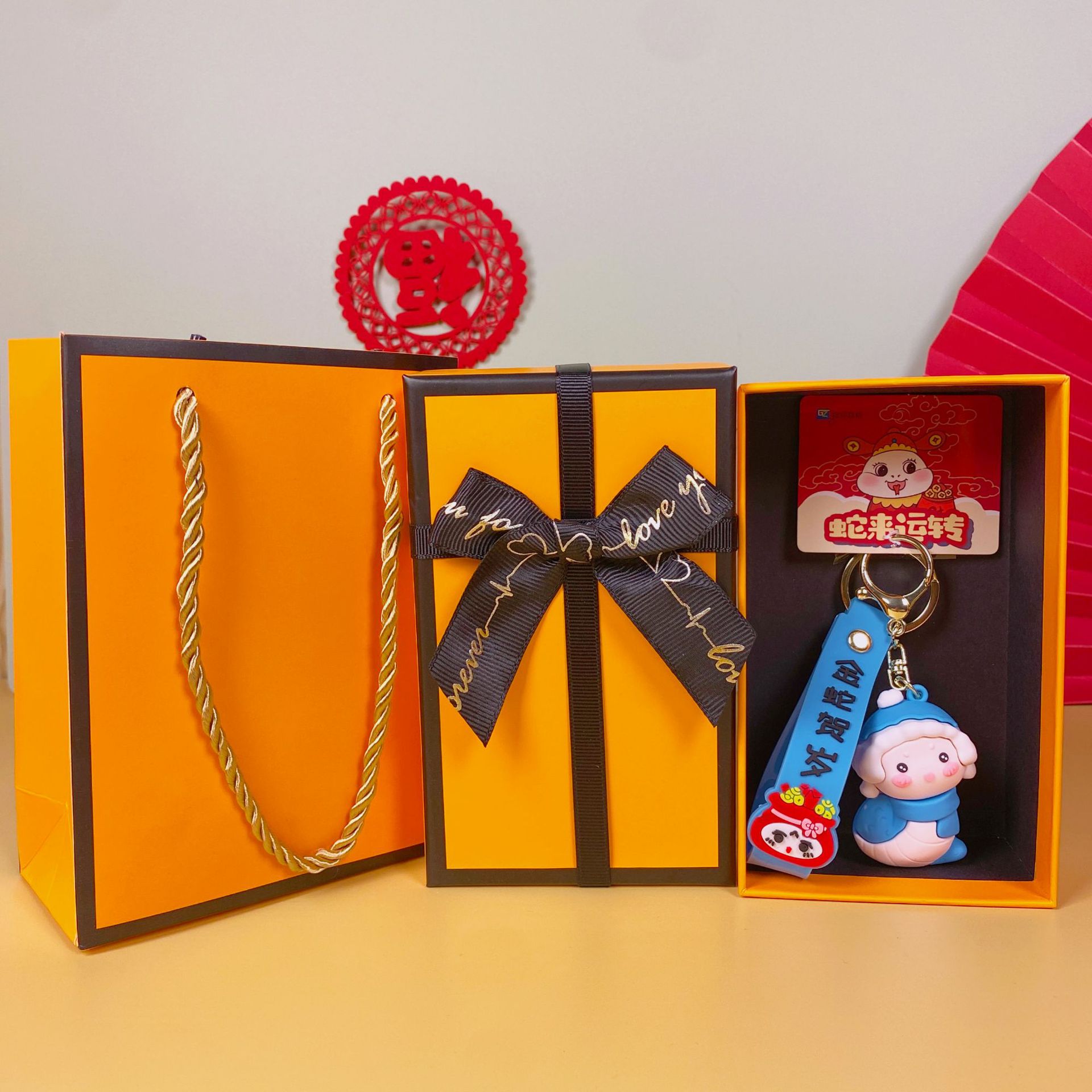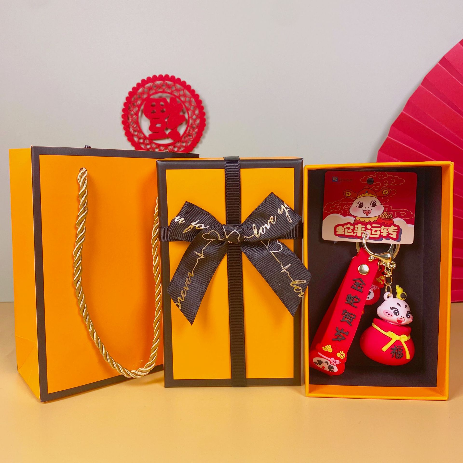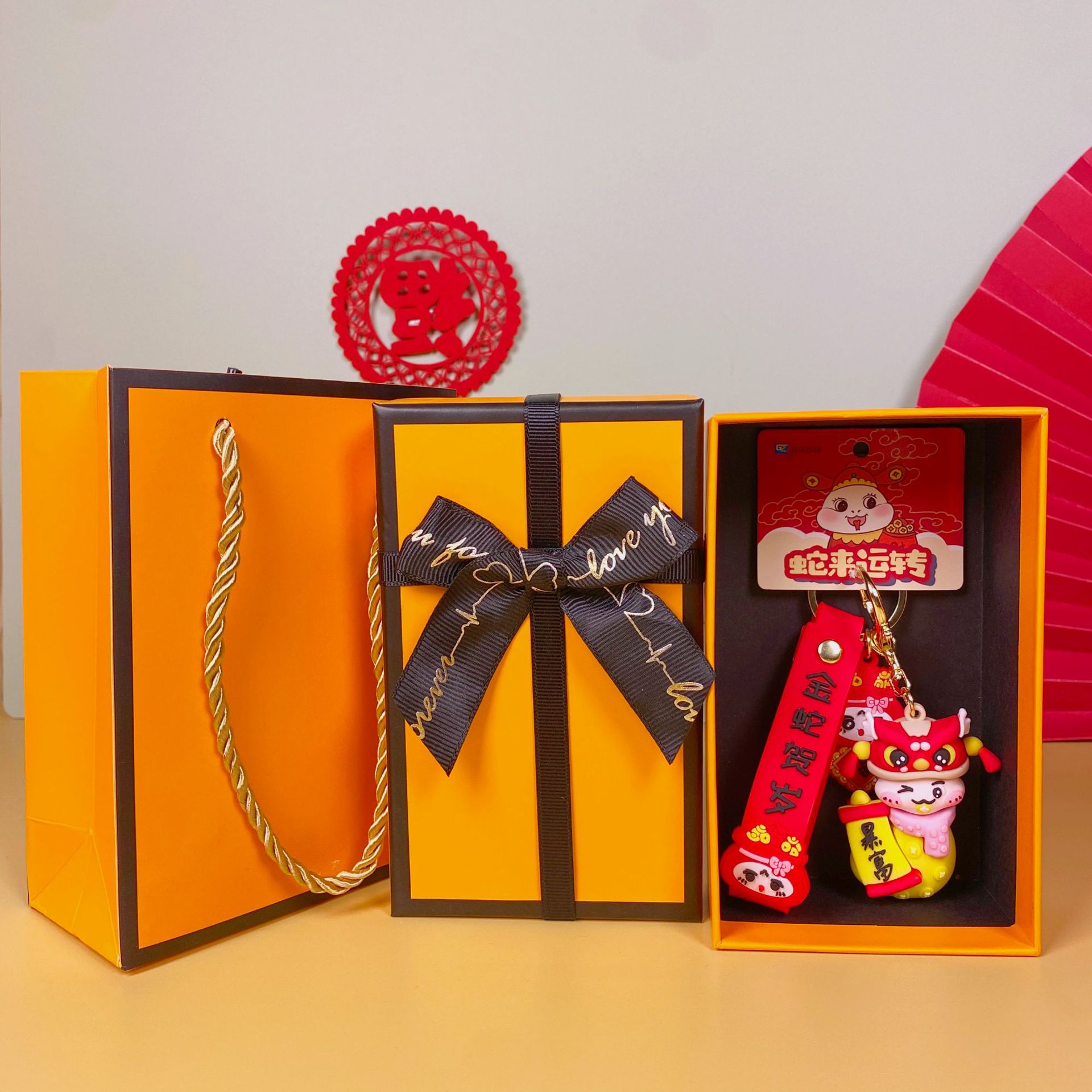 • Guochao Xiao Fu Snake-Focai(엘리베이터) + 주황색 선물 상자 + 선물 가방