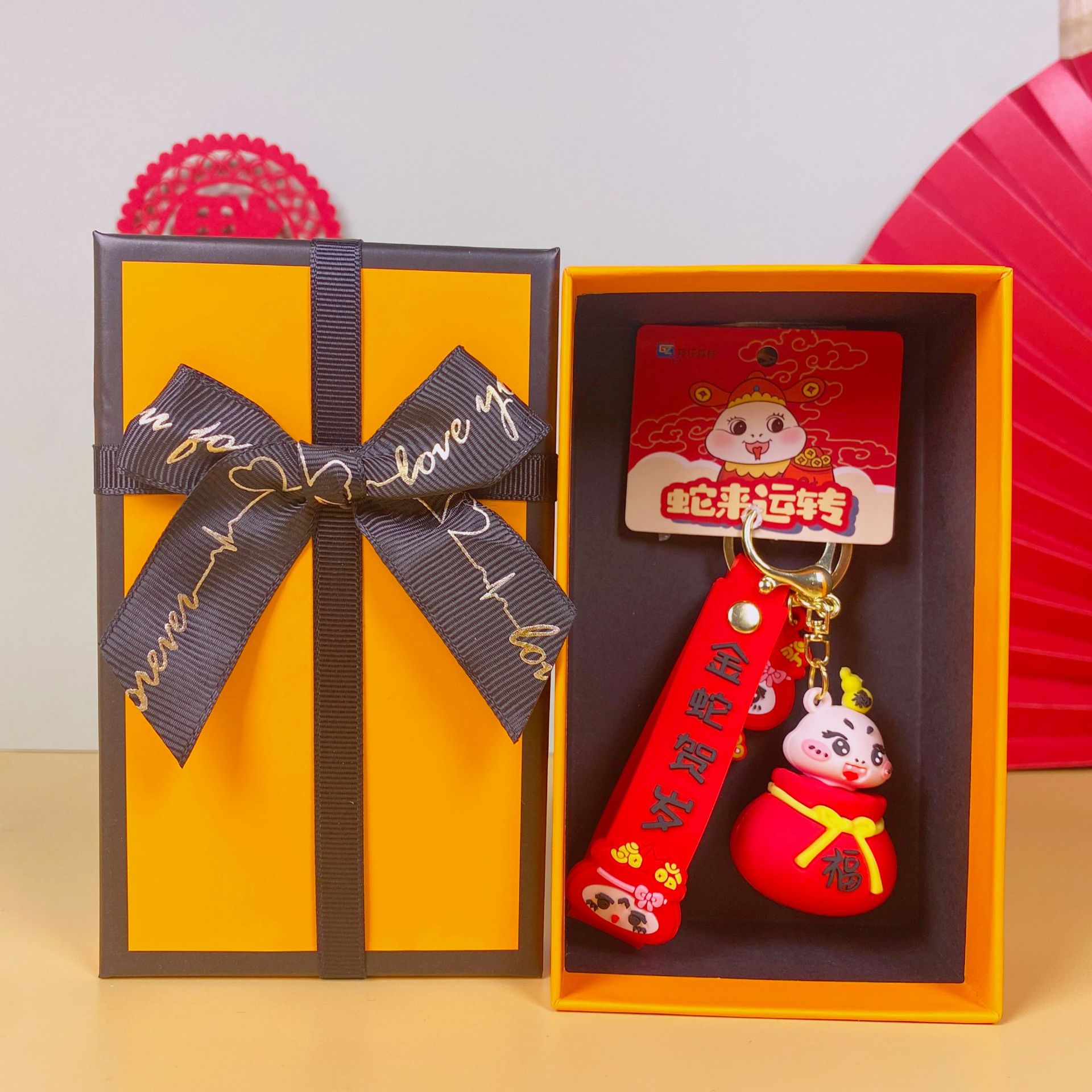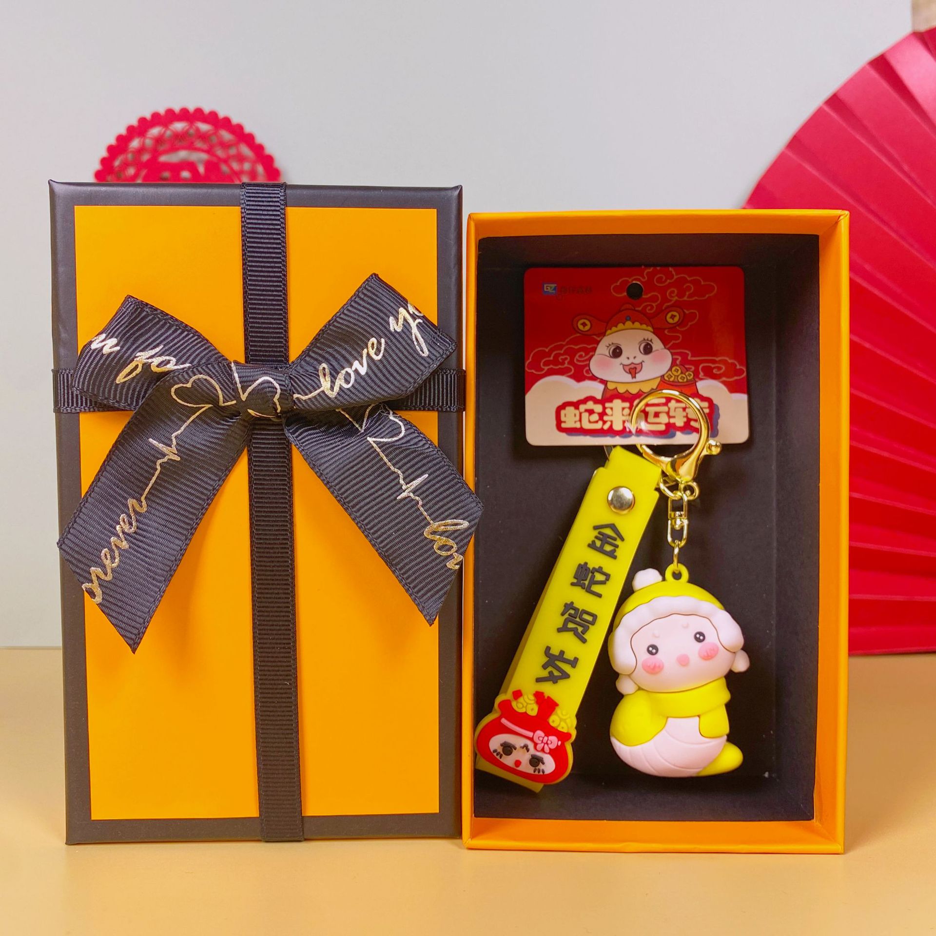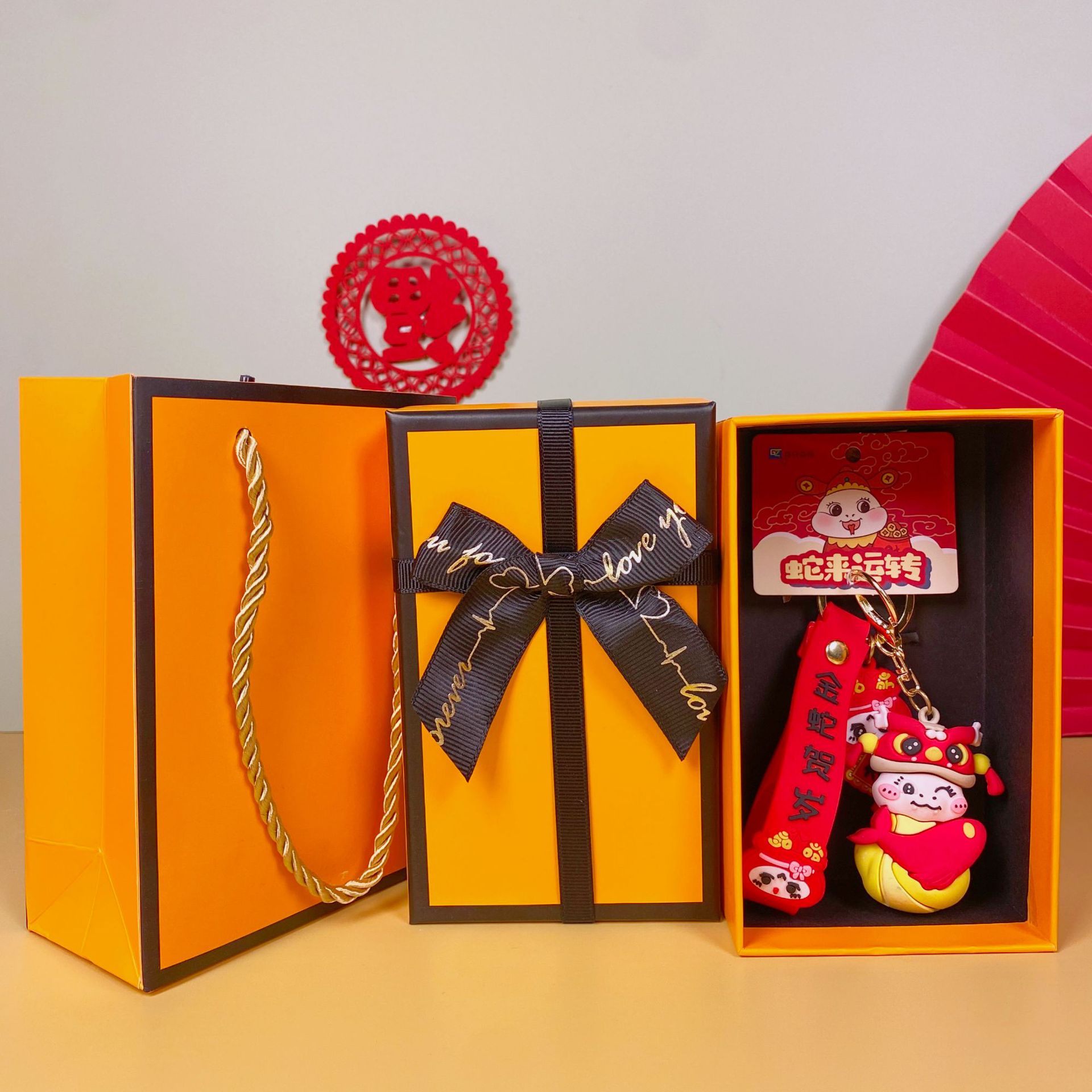 • Guochao Xiao Fu Snake-Focai(엘리베이터) + 주황색 선물 상자 + 선물 가방