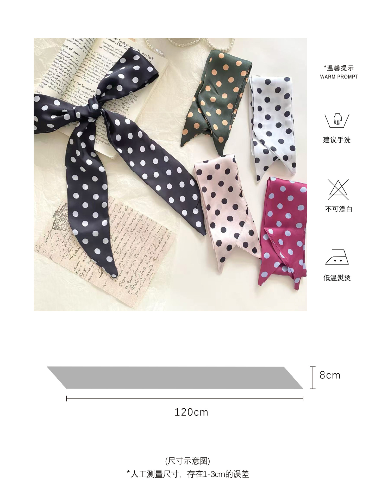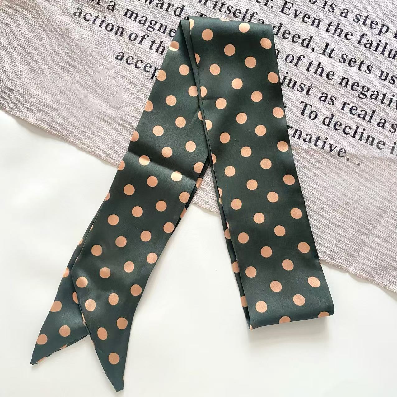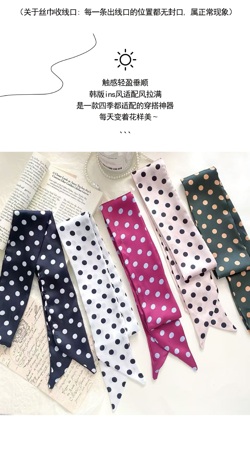 Poll Dot 빈티지 실크 스카프 여성의 얇은 좁은 긴 포인팅 스카프 프랑스 스타일 올 매치 타이 백 헤어 래핑 셔츠 리본