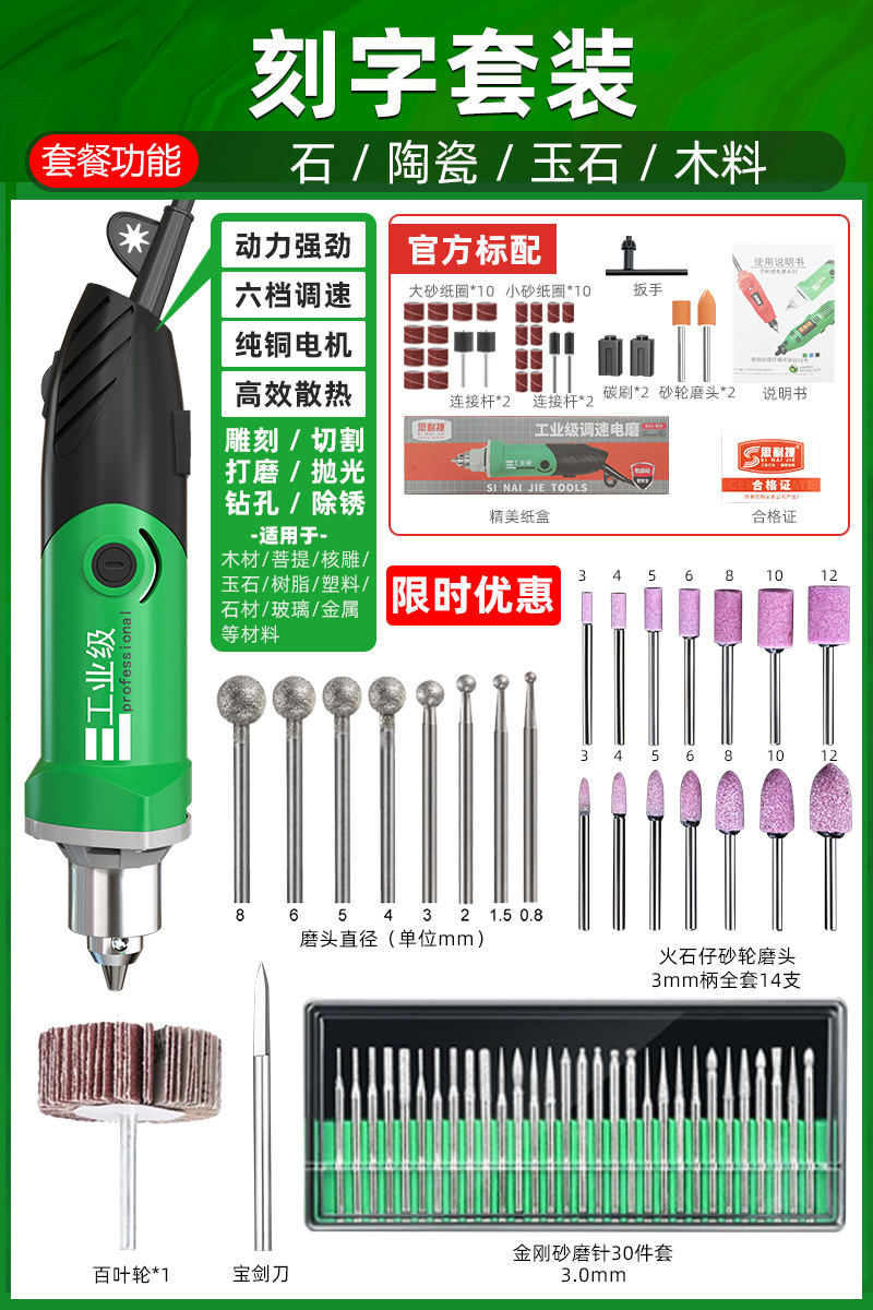 • snj-519 고출력 전기 그라인더 [일반 금속 목재 및 옥 플라스틱 조각 세트]