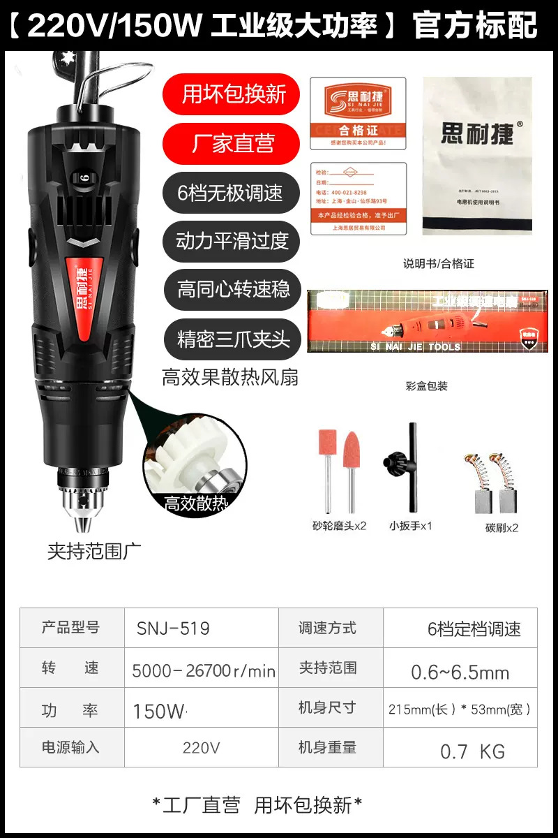 • snj-519 고출력 전기 연삭 [옥 펀치 세트에는 연삭 세트가 함께 제공됩니다]