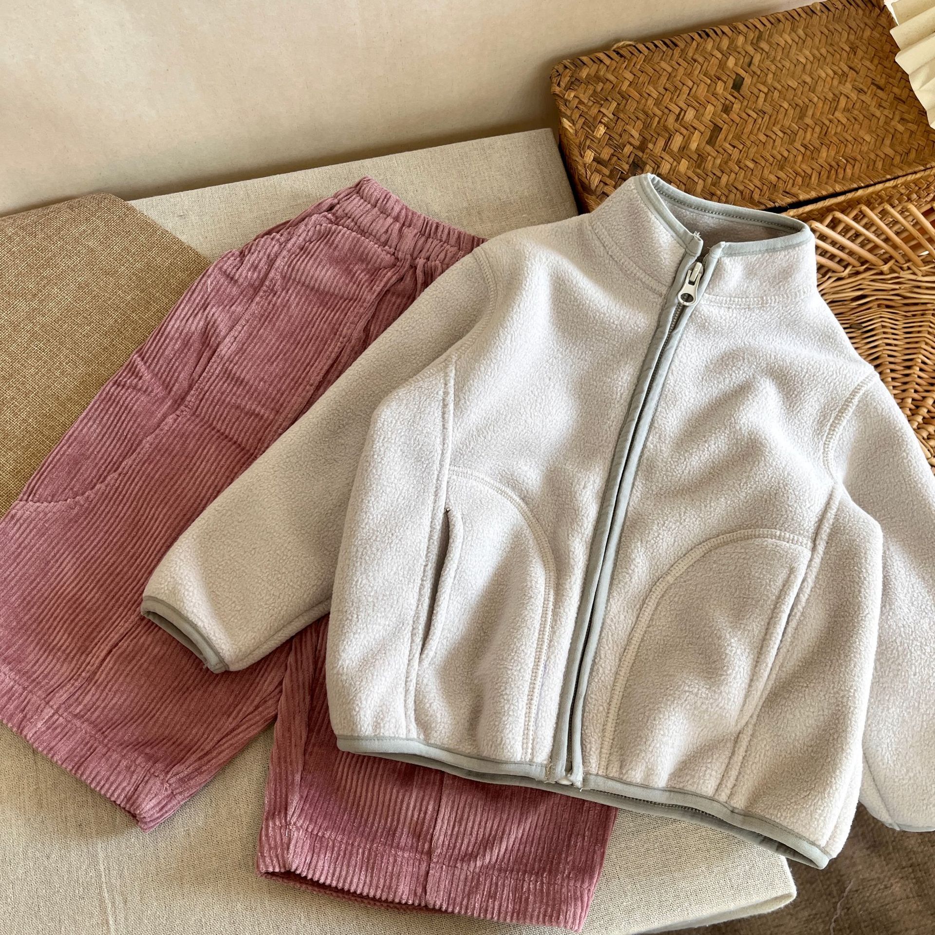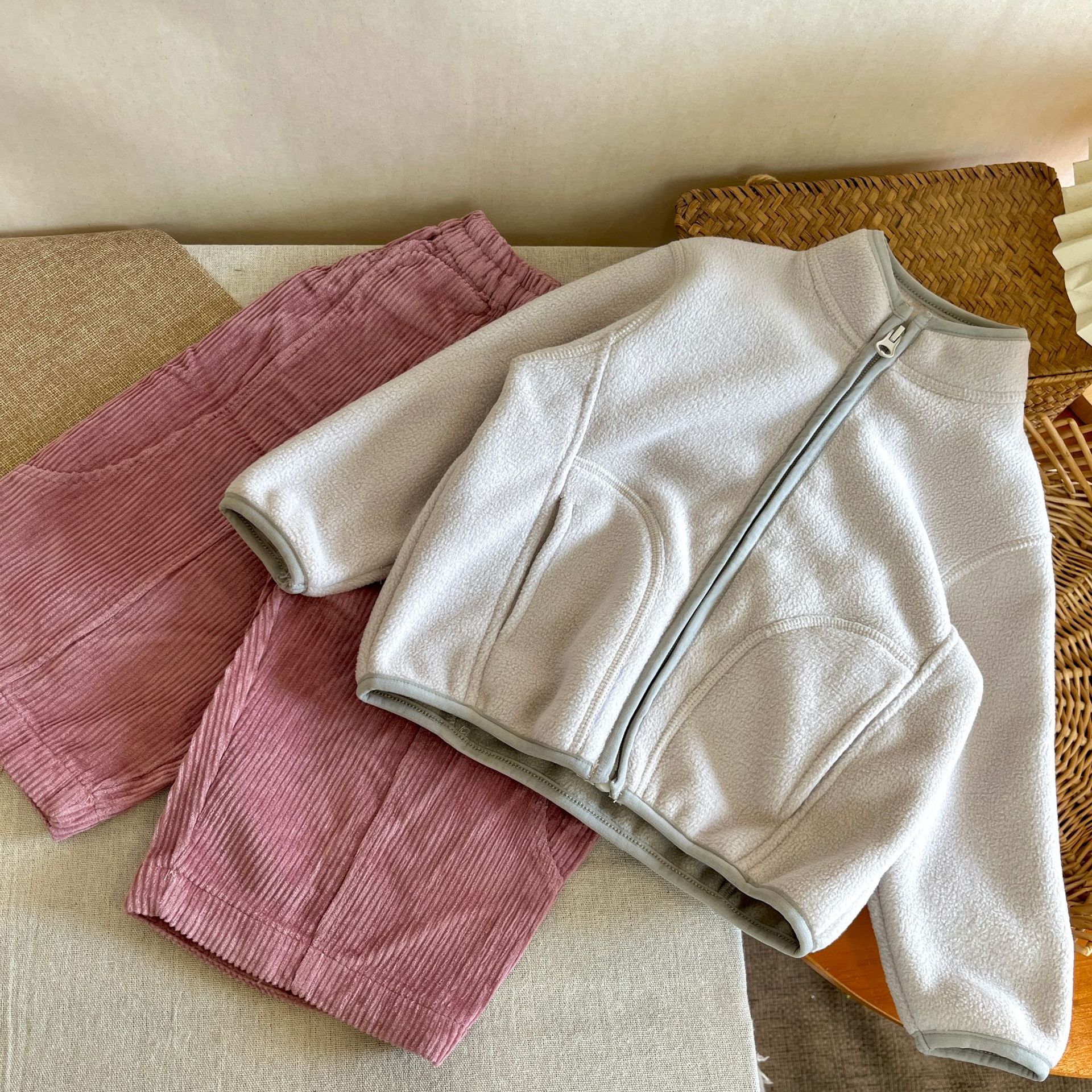 재고 있음~2025 가을 겨울 아동용 따뜻하고 스타일리시한 폴라 플리스 안감 재킷 상의 유아 유치원 세트 트렌디