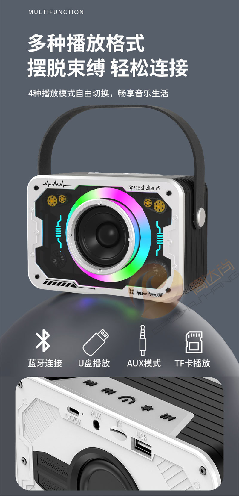 프라이빗 모델 블루투스 스피커 V9 데스크탑 휴대용 소형 스피커 저음 확산기 분위기 조명 야외 휴대용 블루투스 스피커