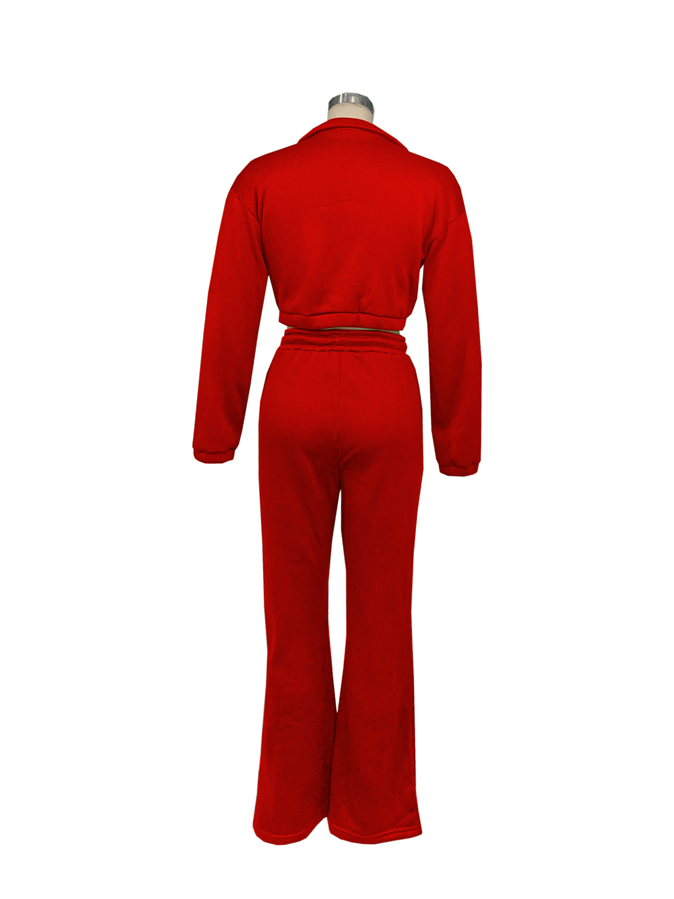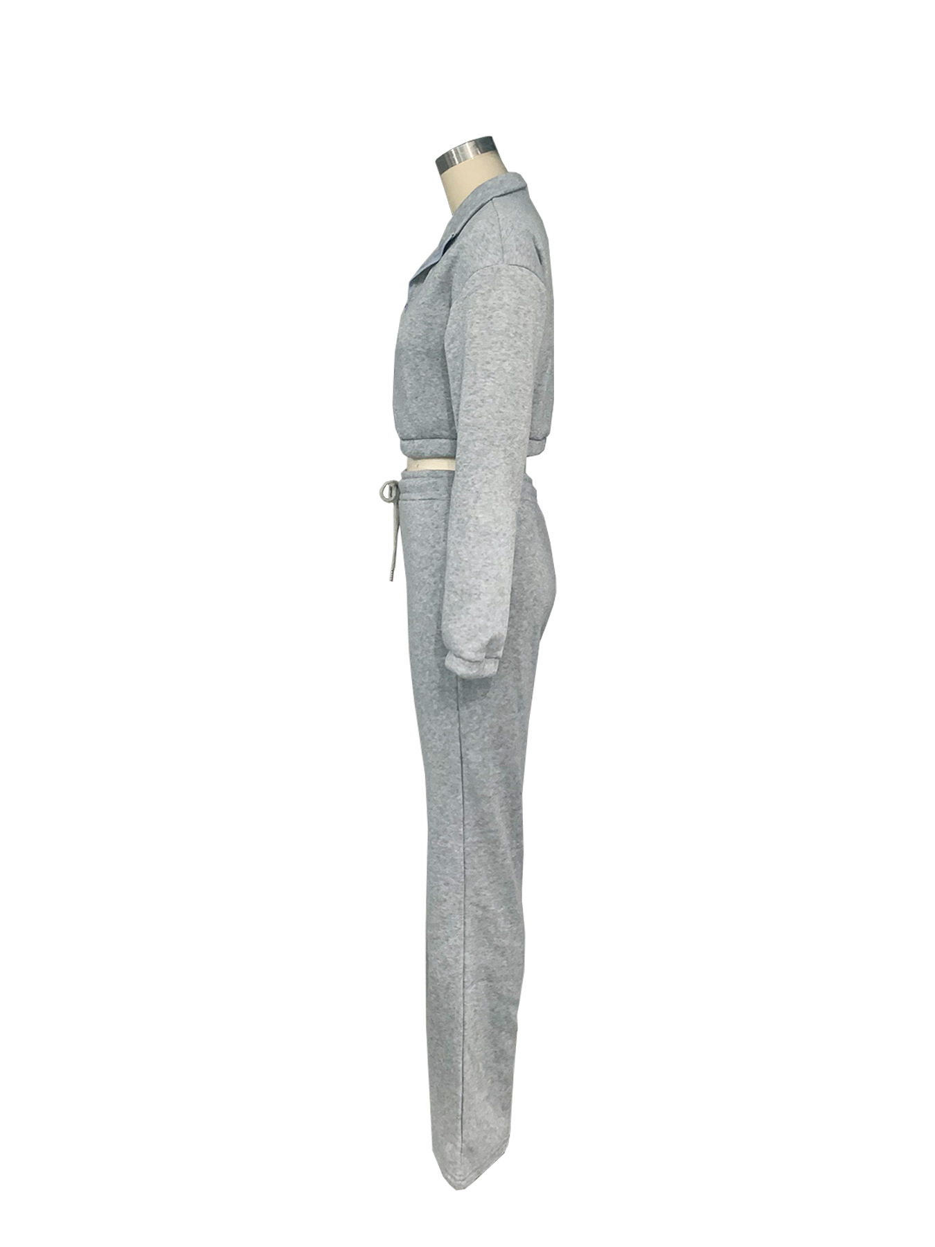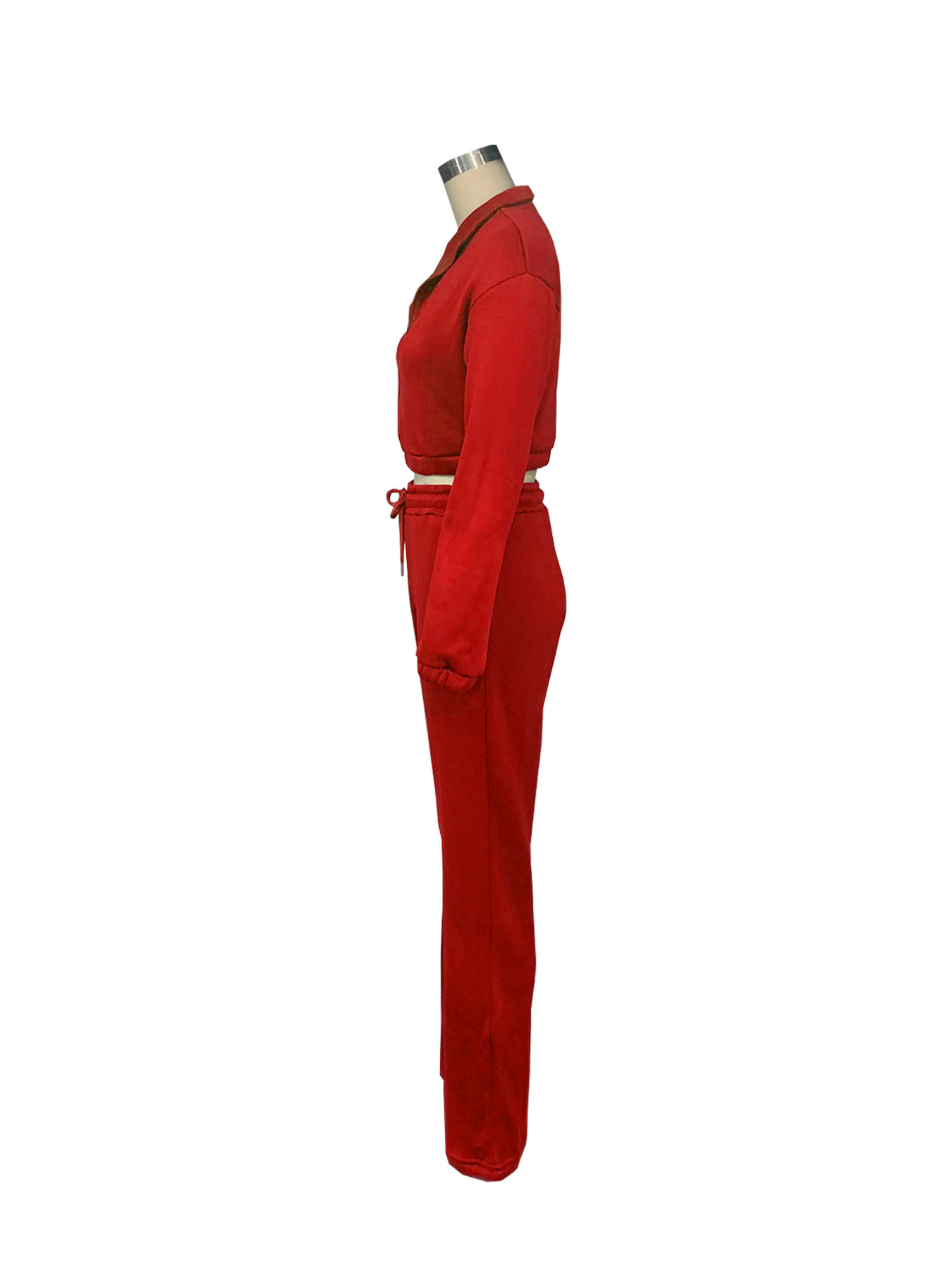 TW605 패션 가을과 겨울 국경 유럽과 미국 여성 지퍼 세미 하이 칼라 허리 기모 땀 넥타이 로프 바지 스포츠 세트